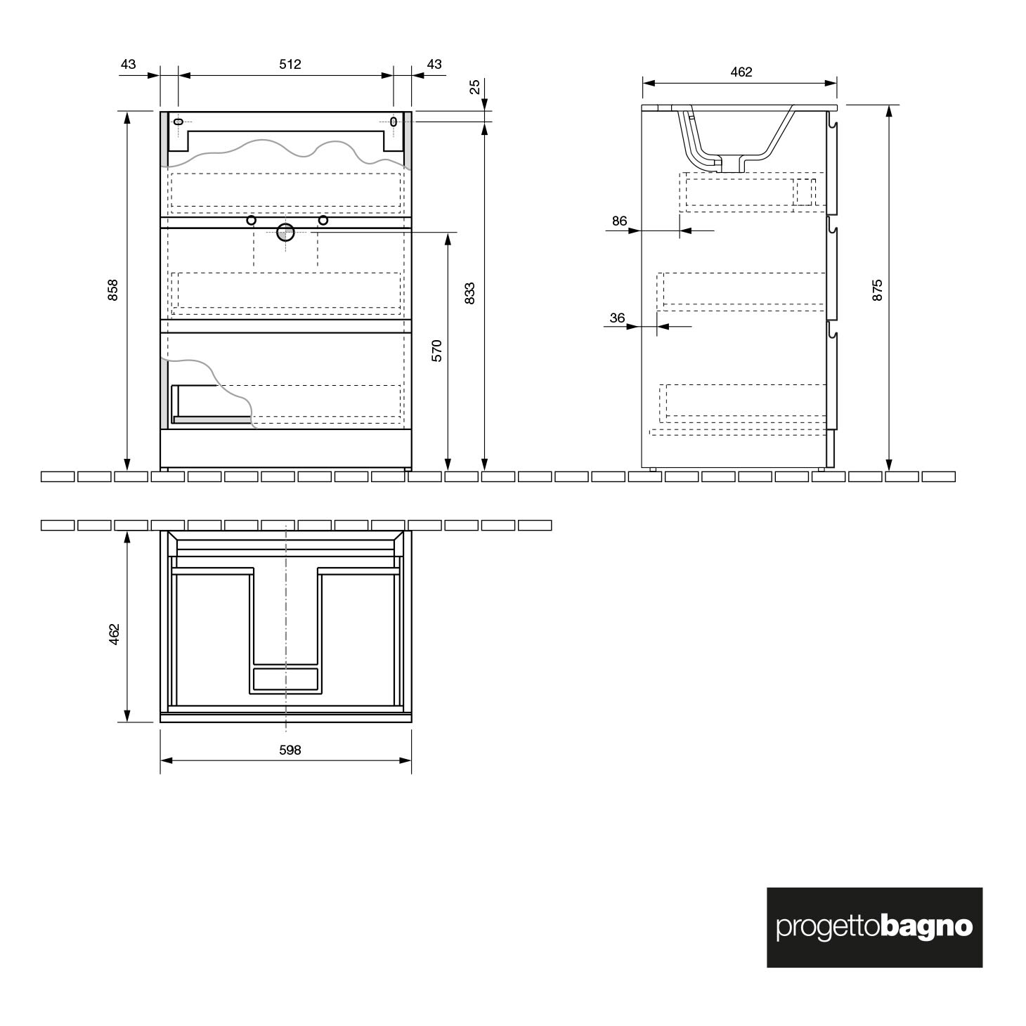 progettobagno Stresa Tre Waschtisch mit Unterschrank 60 cm bodenstehend
