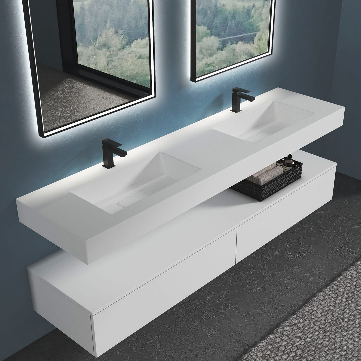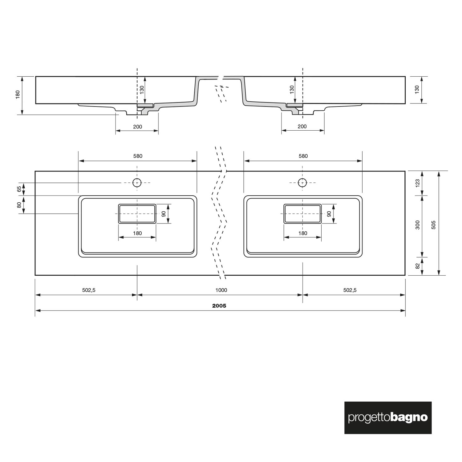 progettobagno Orta Doppel-Waschtisch 200 cm mit Hahnloch