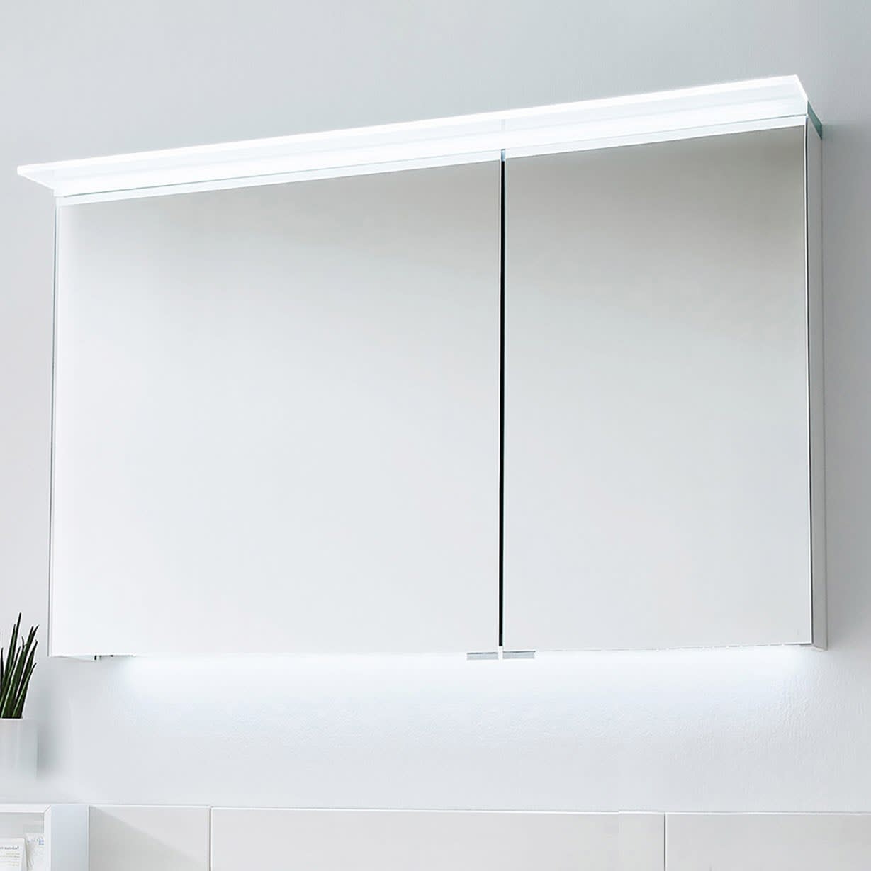 Puris Aspekt Spiegelschrank 100 cm mit 2 Türen, große Tür links und LED-Flächenleuchte