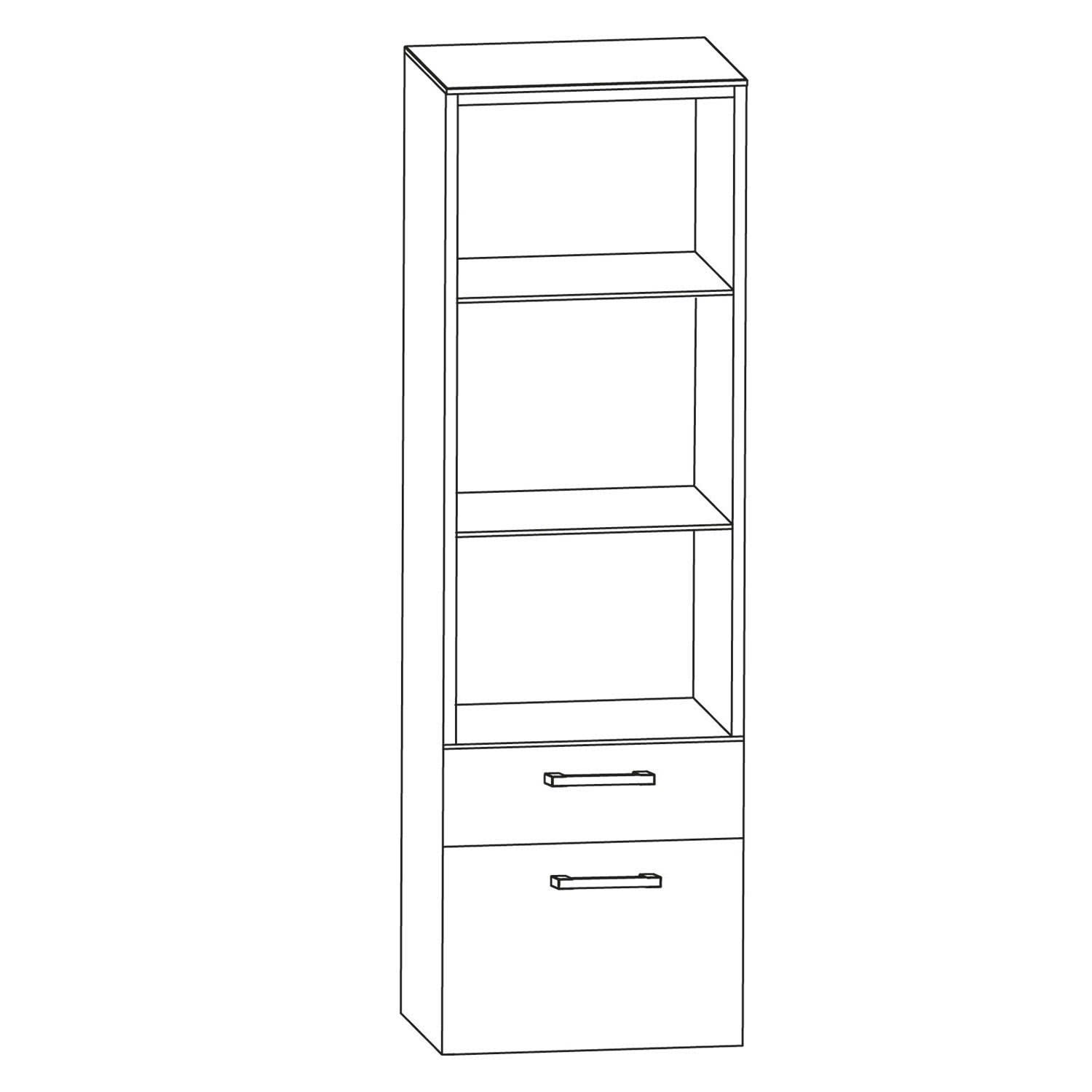 Puris b • brace Mittelschrankregal 40 x 30 x 130,8 cm mit 1 Auszug, 1 Schubkasten und 3 offenen Fächern