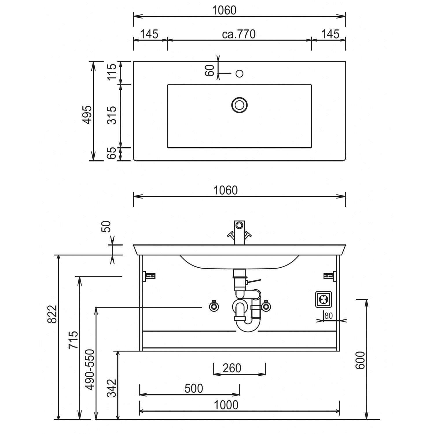 Puris b • brace Waschtisch-Set 106 cm mit Keramik-Einzelwaschtisch Valencia