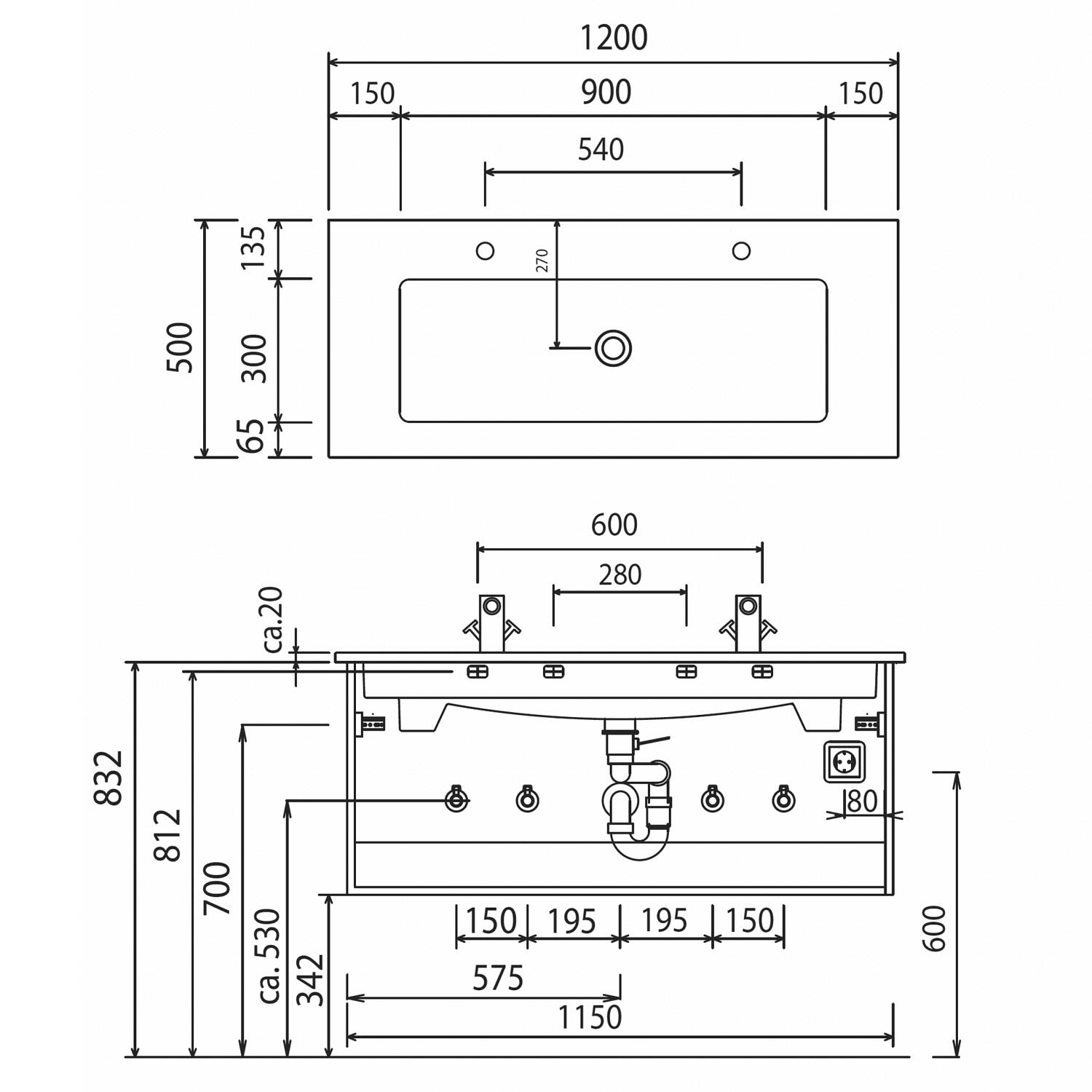 Puris b • brace Waschtisch-Set 120 cm mit Keramik-Doppelwaschtisch Villeroy & Boch Venticello mit CeramicPlus