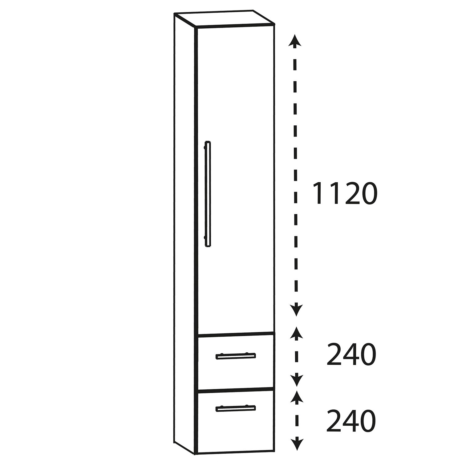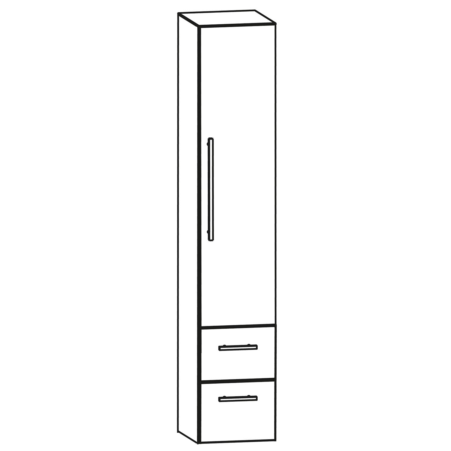 1 Tür mit Anschlag rechts, 2 Auszüge
