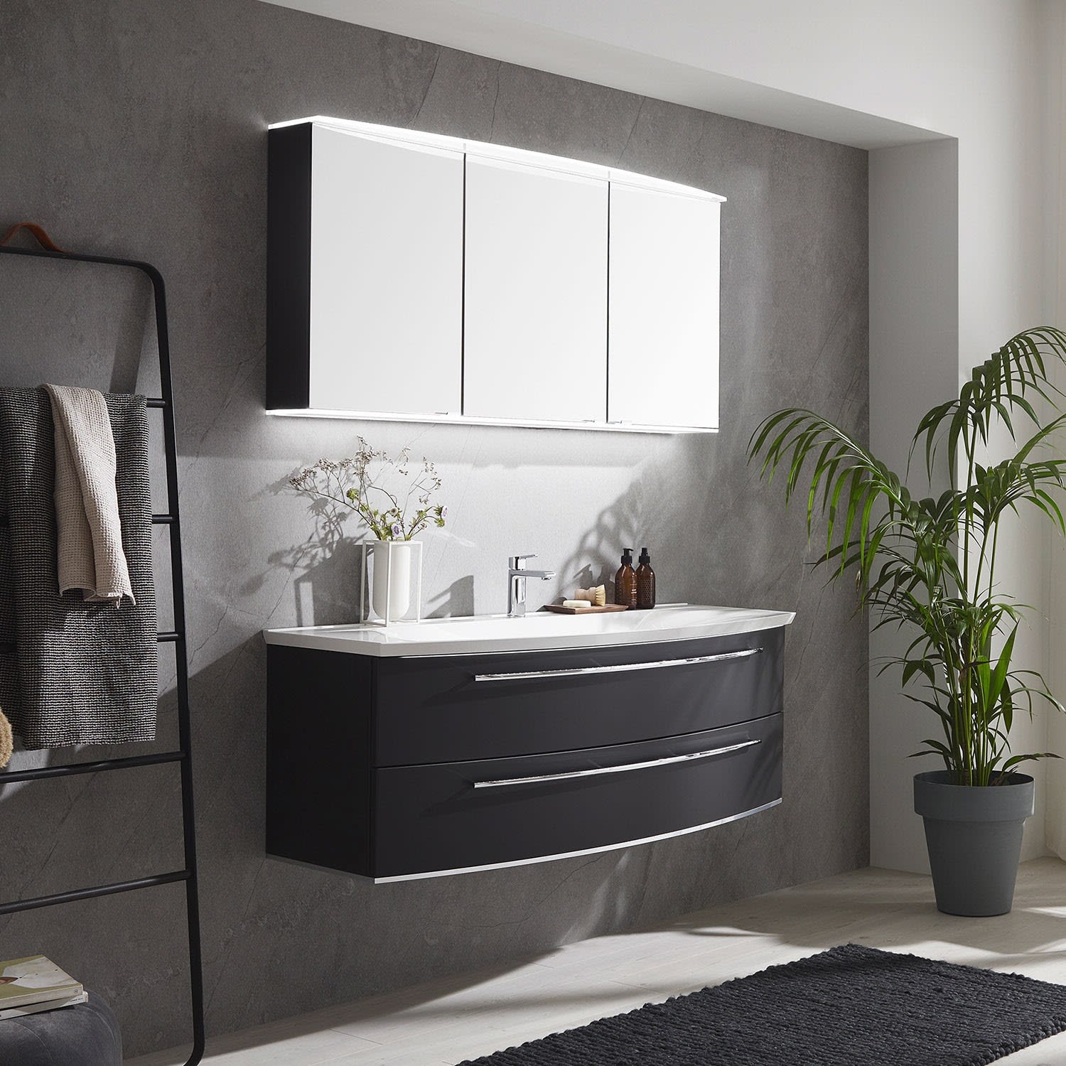 ohne LED-Beleuchtung, Einzel-Waschtisch, 2 Auszüge