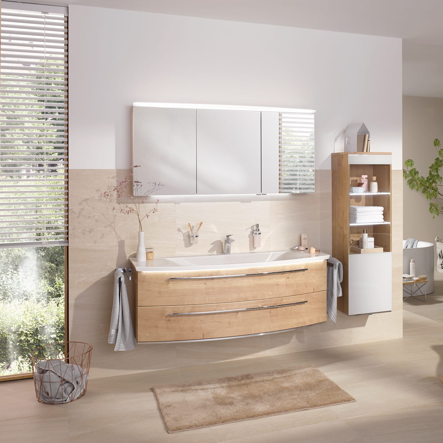 - b • bright Waschtisch-Set 142,9 cm mit 4 Auszügen und LED-Beleuchtung, SETBR4DB6F785K185690554834
