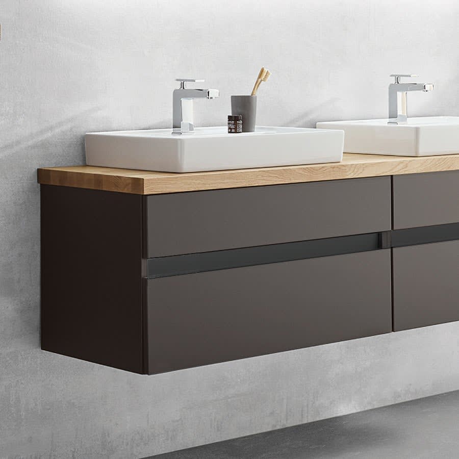 Puris b • essence Set mit Waschtischunterschrank und Waschtischplatte 81,2 cm, Griff 341