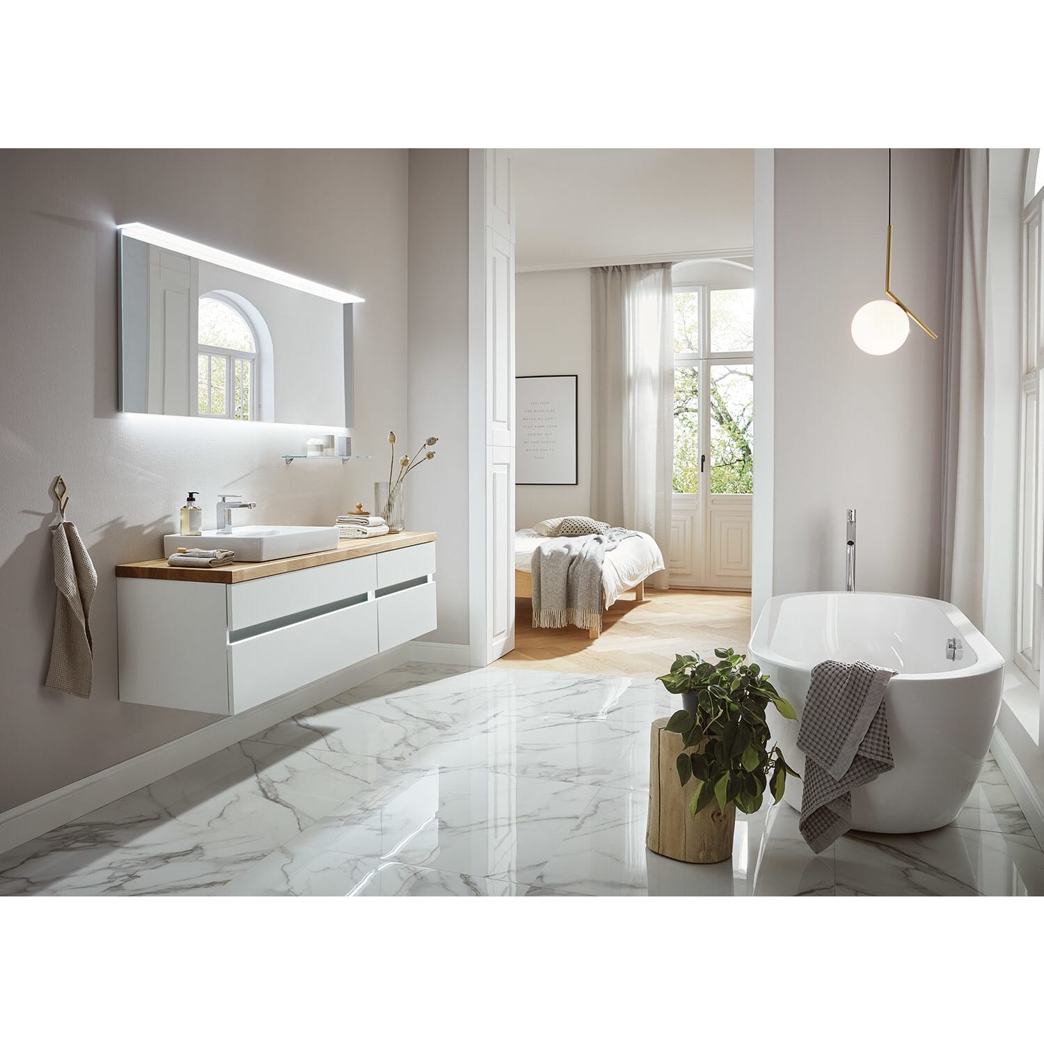 Puris b • essence Set mit Waschtischunterschrank links, Unterschrank und Waschtischplatte 161,2 cm, Griff 341