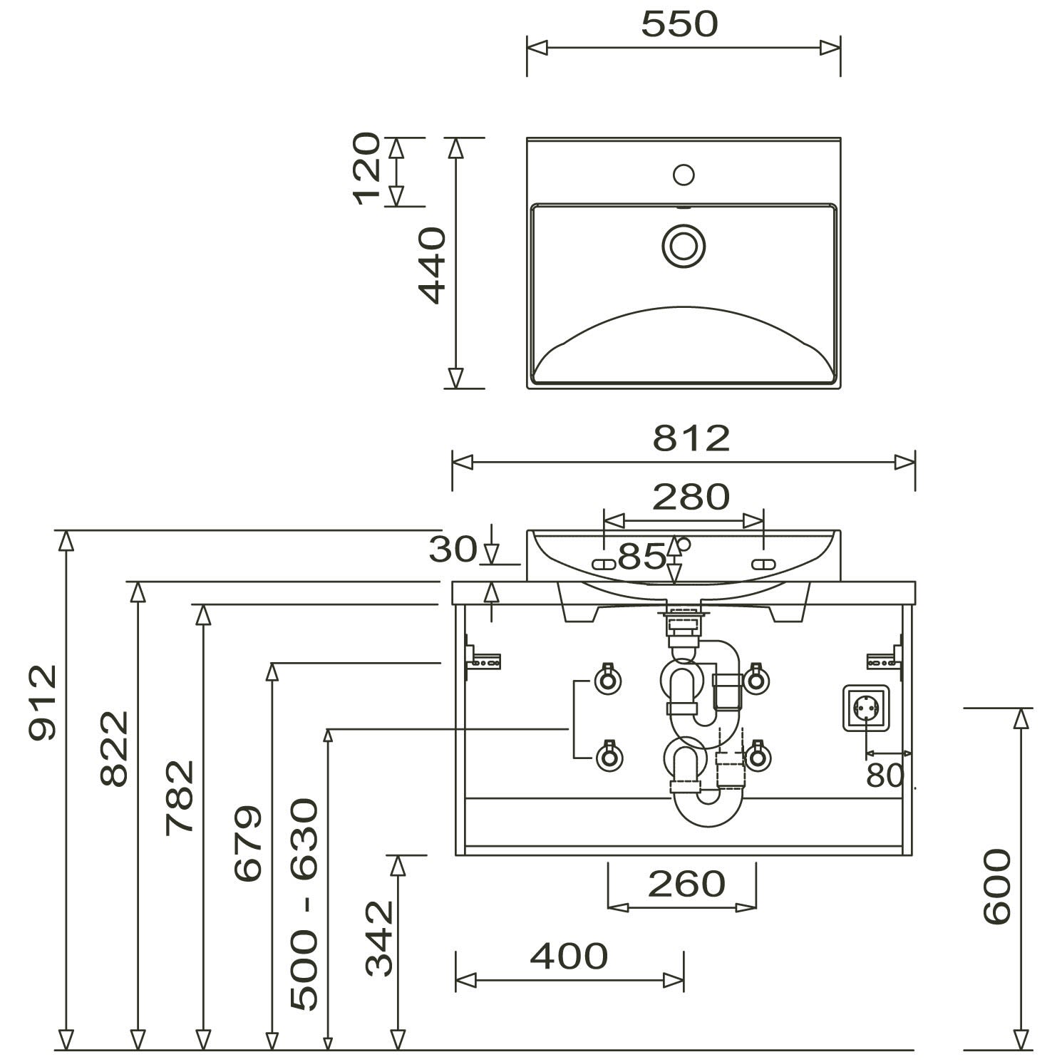 Waschtischunterschrank 80 cm, Griff 342