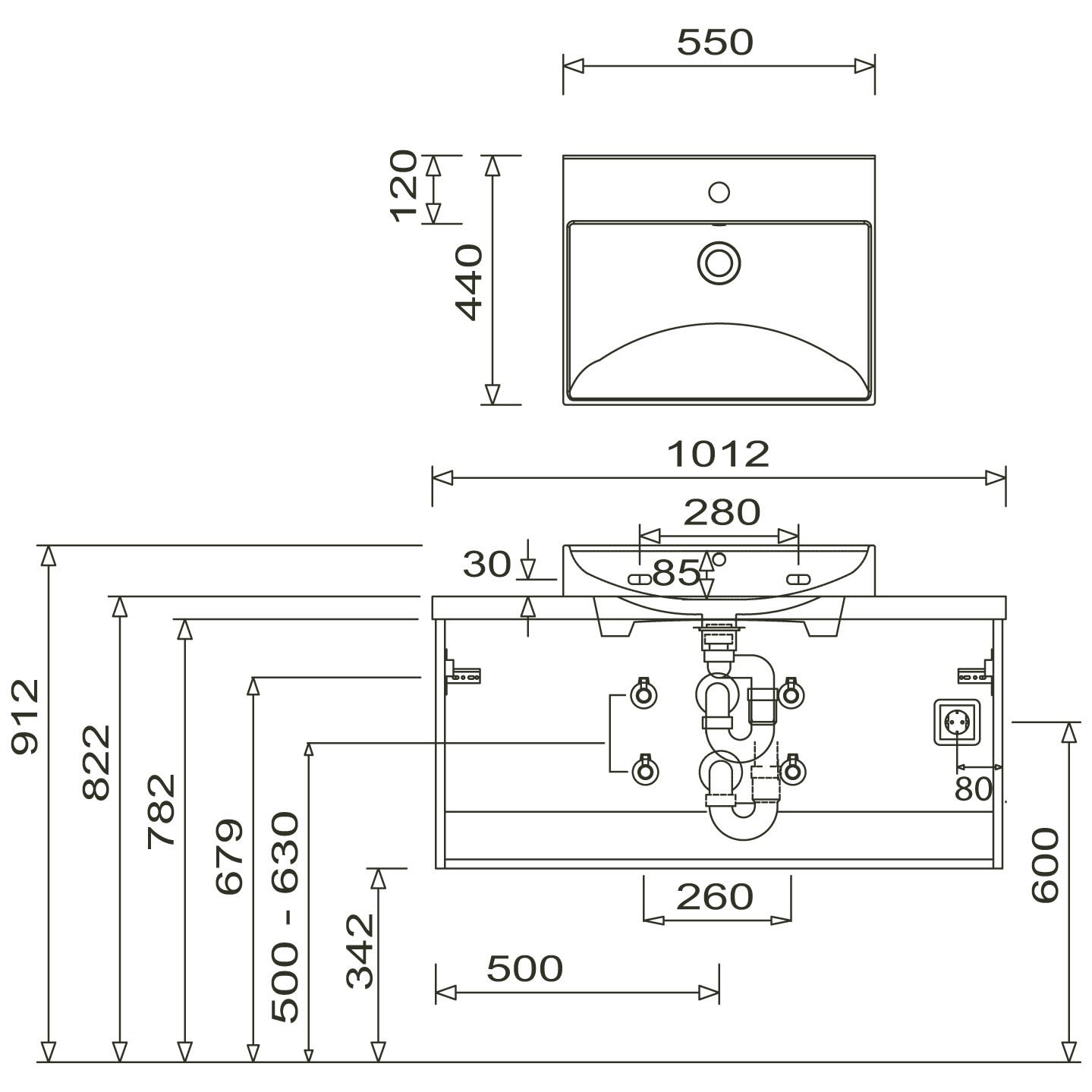 - mit 1 Waschtischausschnitt mittig