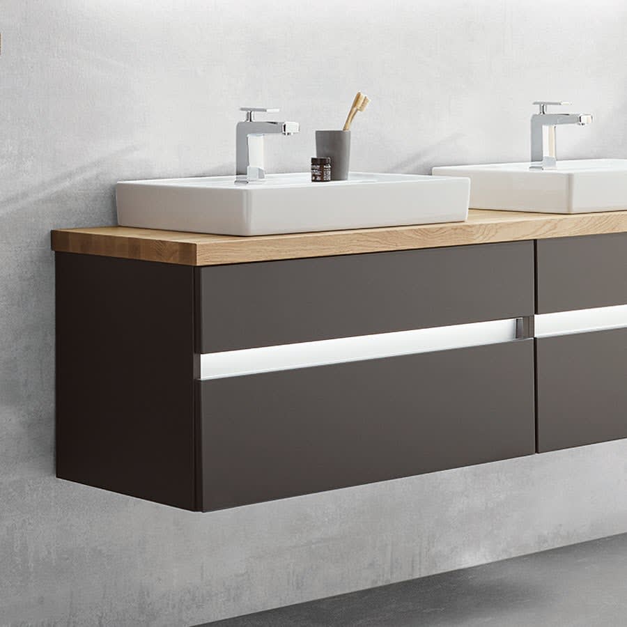 Puris b • essence Set mit Waschtischunterschrank und Waschtischplatte 81,2 cm, mit LED-Beleuchtung, Griff 341