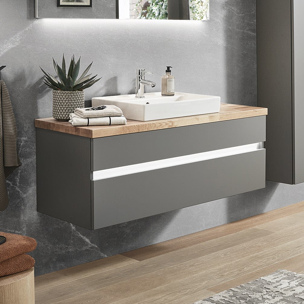 Puris b • essence Set mit Waschtischunterschrank und Waschtischplatte 101,2 cm, mit LED-Beleuchtung, Griff 341