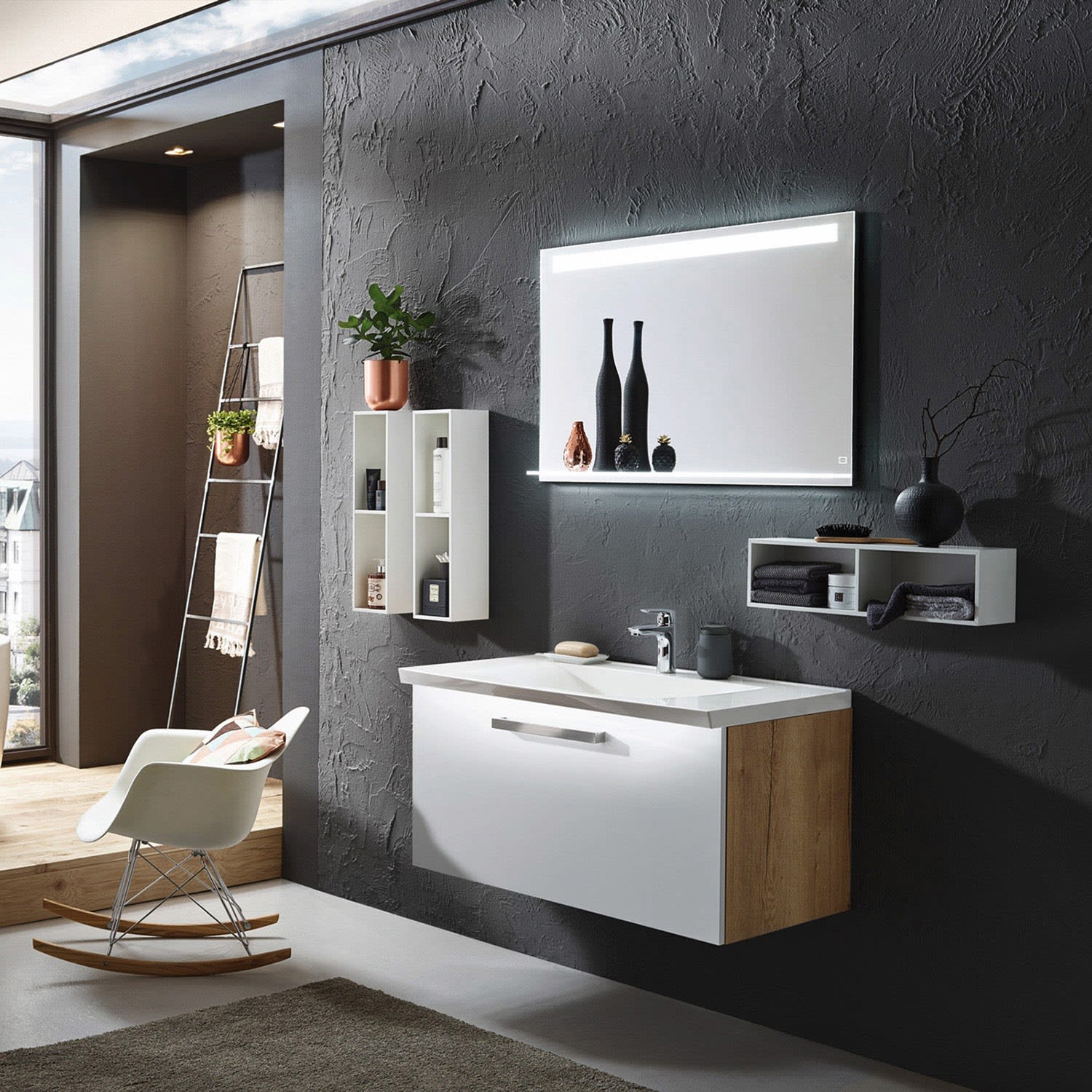 Puris b • maxx evermite® Mineralguss Möbelwaschtisch 76,2 cm mit LED-Beleuchtung