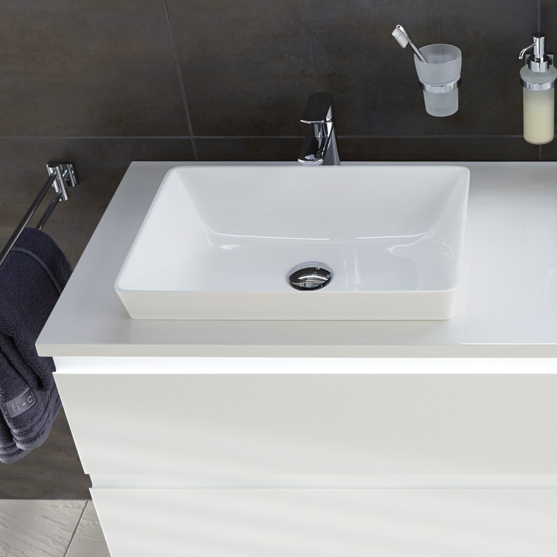 Puris b • straight Mineralgussplatte 61,2 cm mit 1 Aufsatzwaschtisch 49 cm und LED-Beleuchtung