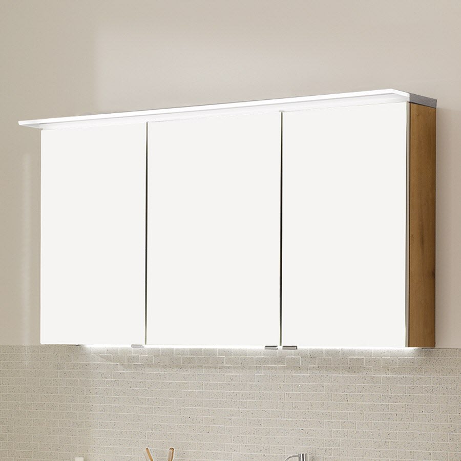 Puris b • straight Spiegelschrank 120 x 15 x 66 cm mit 3 Türen und LED-Flächenleuchte