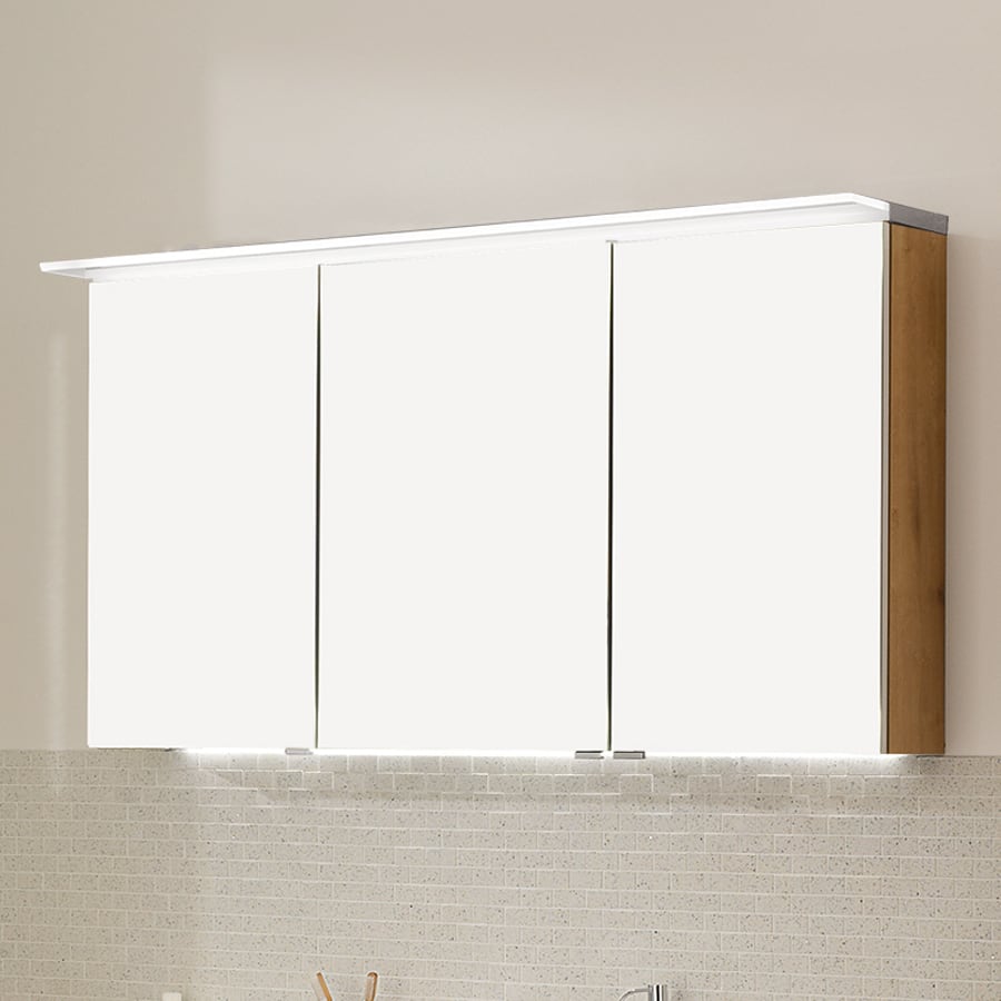Puris b • straight Spiegelschrank 140 x 15 x 66 cm mit 3 Türen und LED-Flächenleuchte
