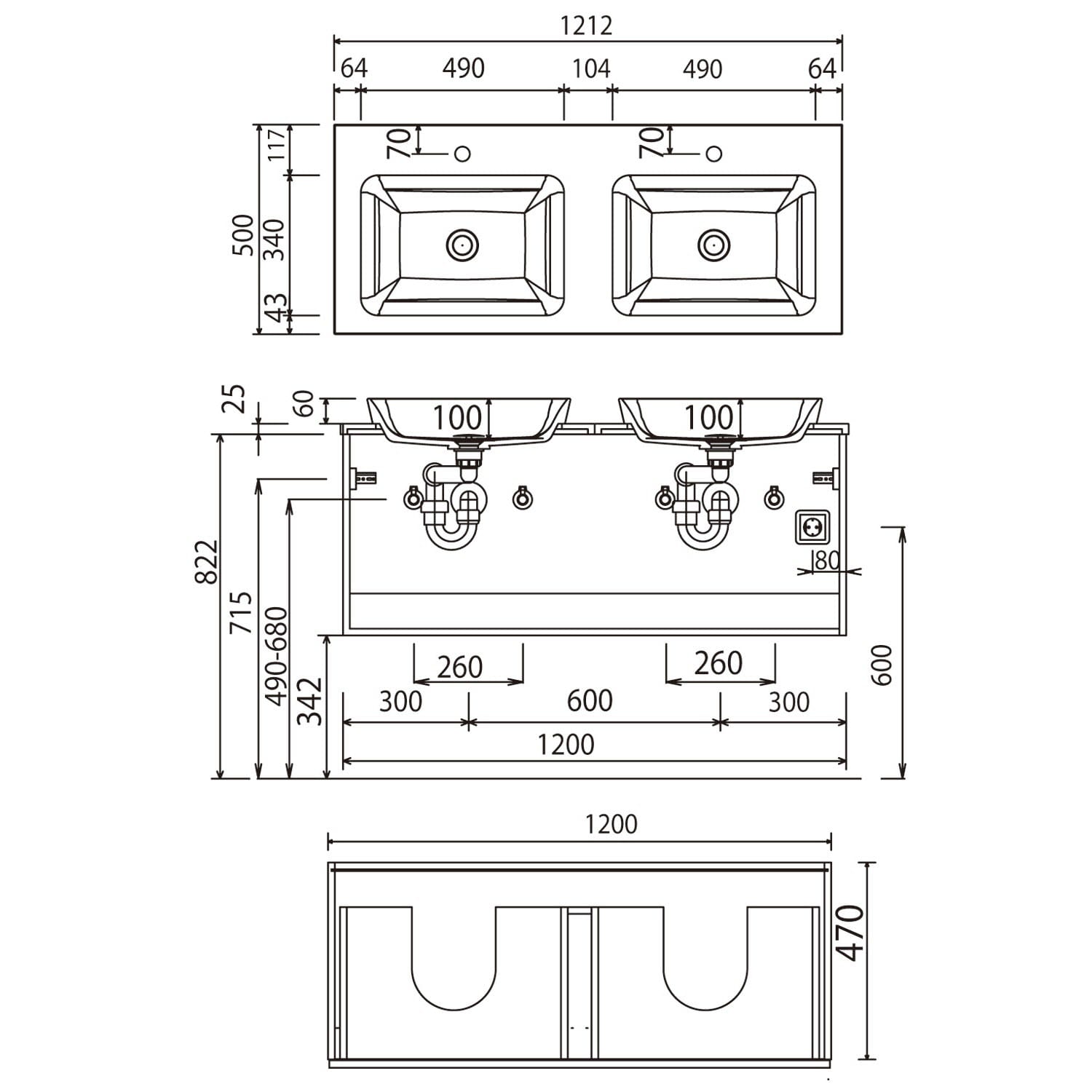 - für Doppelwaschtisch-Lösung
