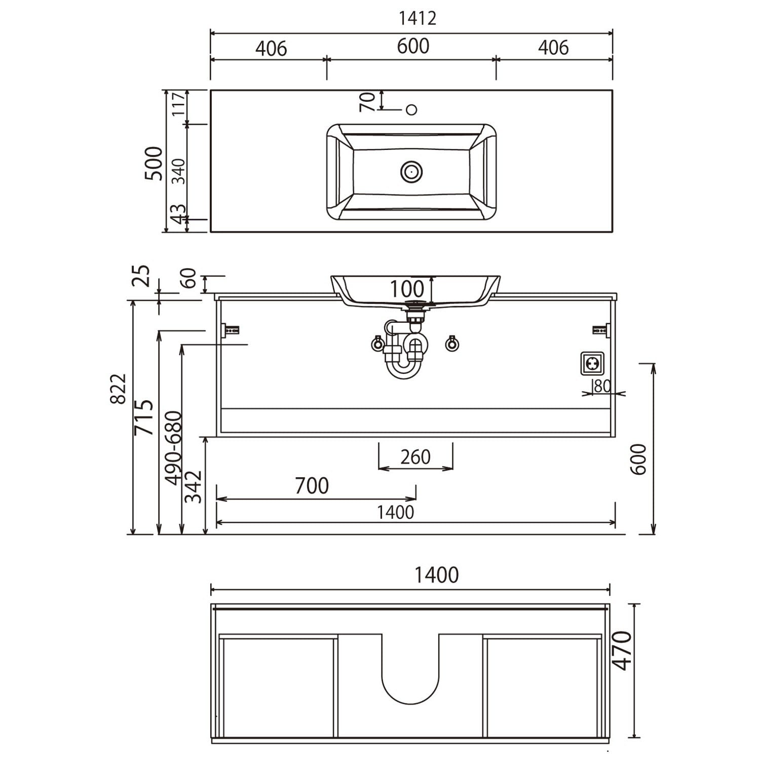 - für Mineralgussplatten mit Aufsatzwaschtischen