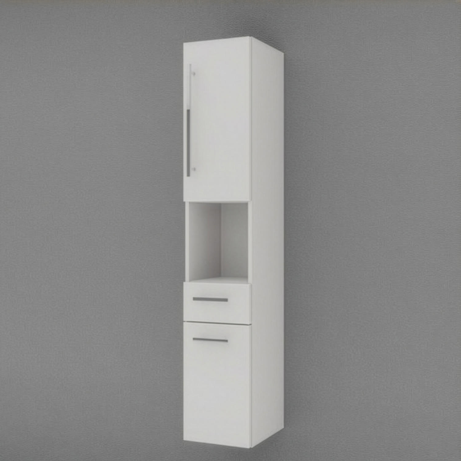 Puris c!mano Hochschrank 30 cm mit 2 Türen, Anschlag rechts, 1 offenem Fach und 1 Schubkasten Griff 289