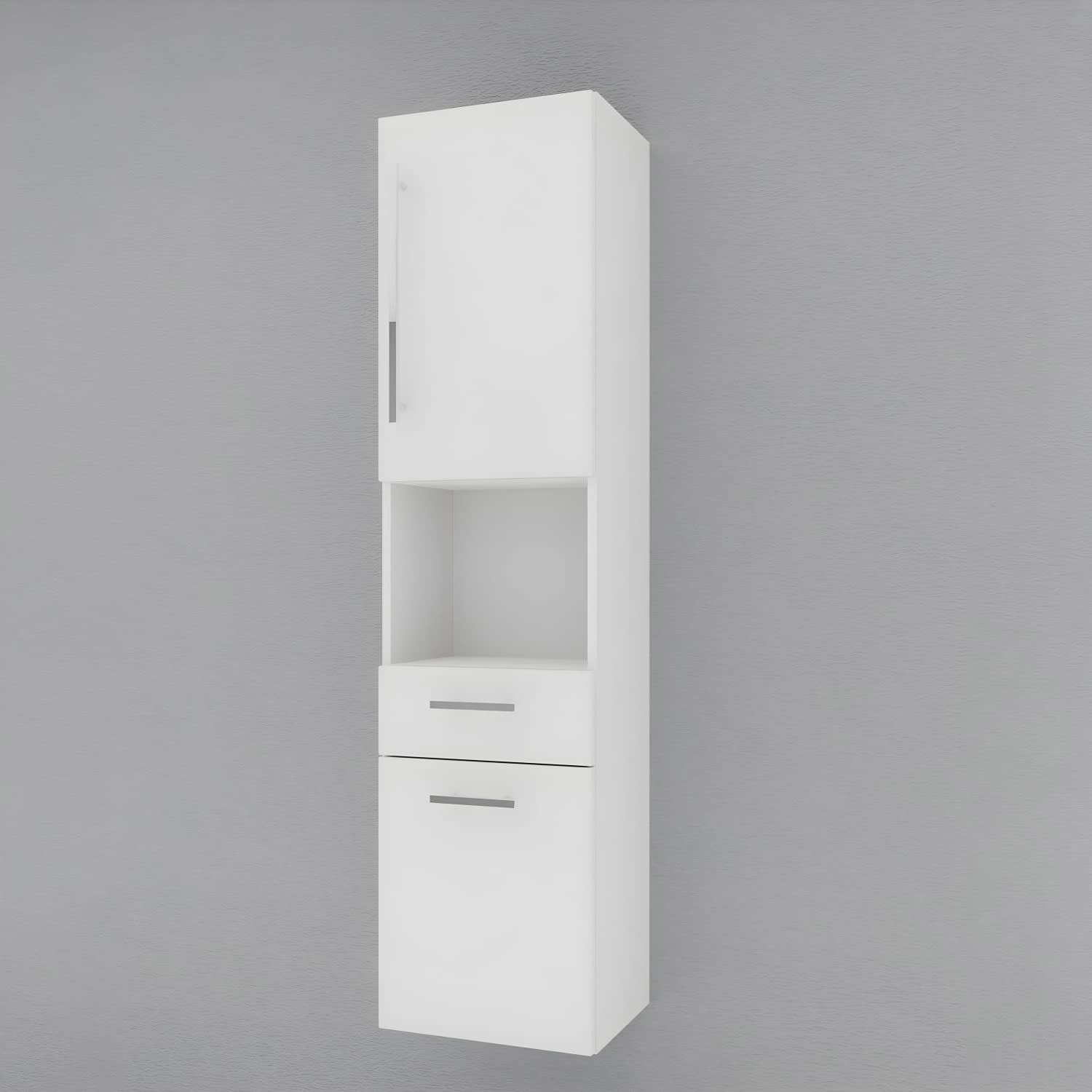 Puris c!mano Hochschrank 40 cm mit 2 Türen, Anschlag rechts, 1 offenem Fach und 1 Schubkasten Griff 289