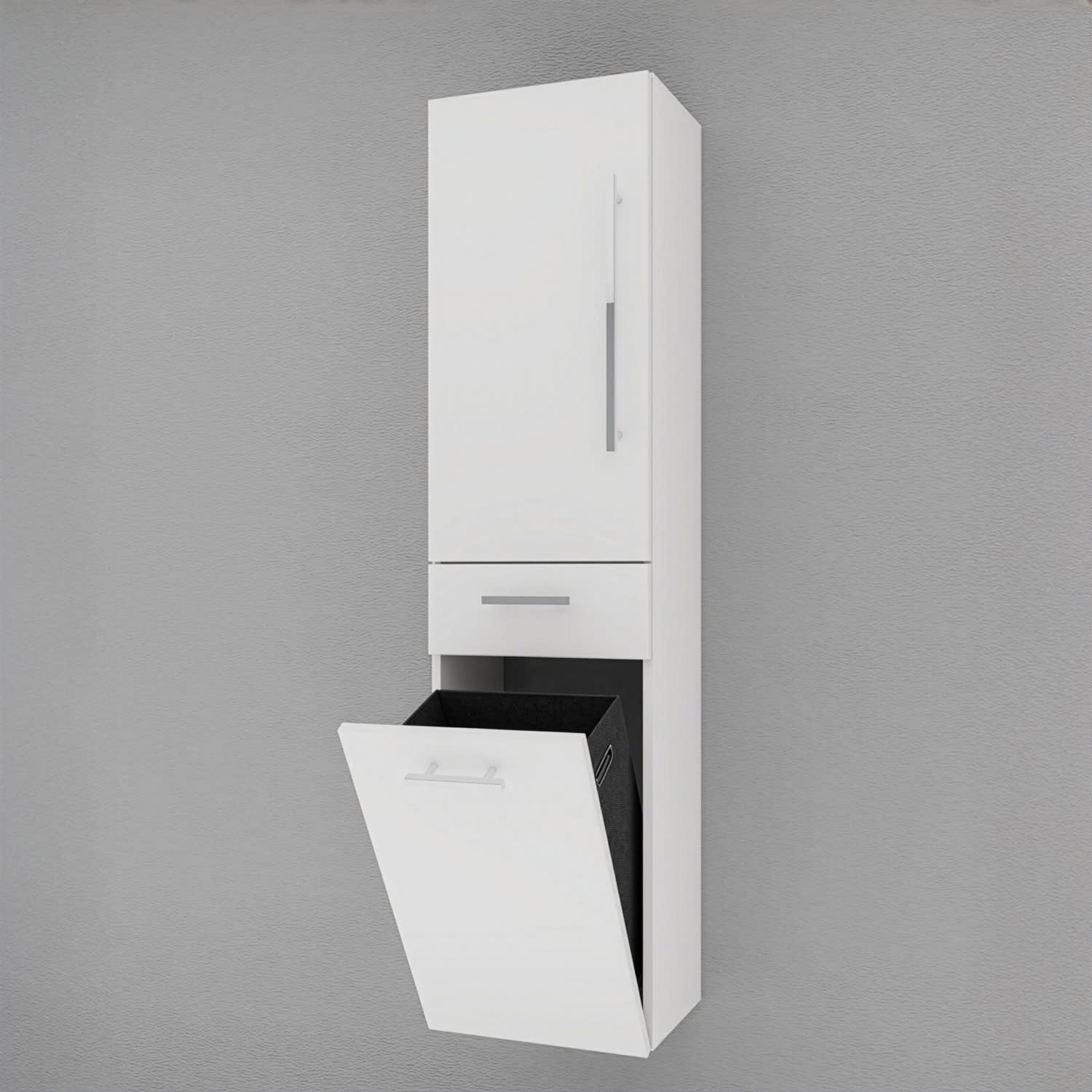 Puris c!mano Hochschrank 40 cm mit 1 Tür, Anschlag links, 1 Schubkasten und Wäschekippe Griff 289