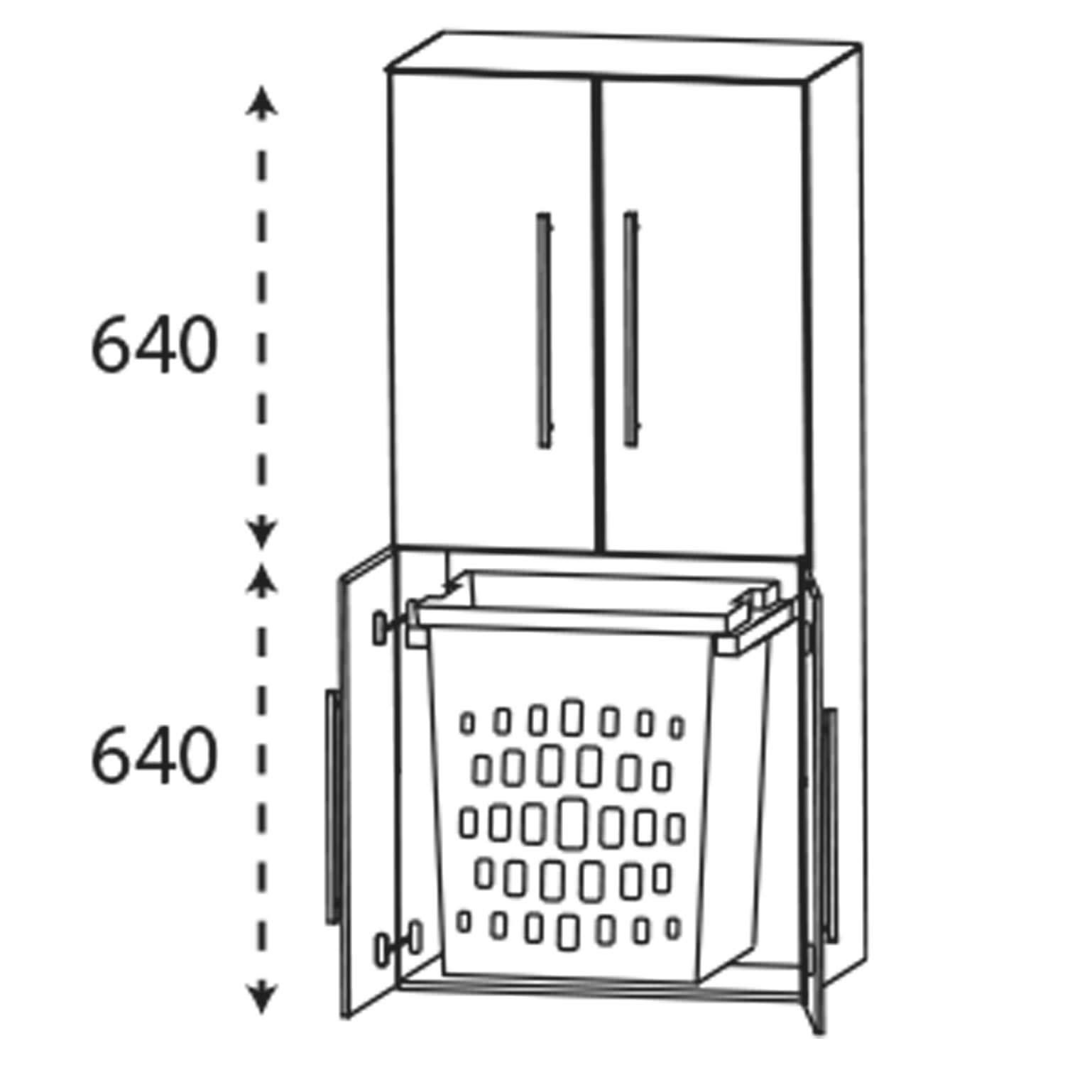 - Wäscheauszug hinter 2 Türen mit Kunststoffkorb, Volumen 40 Liter