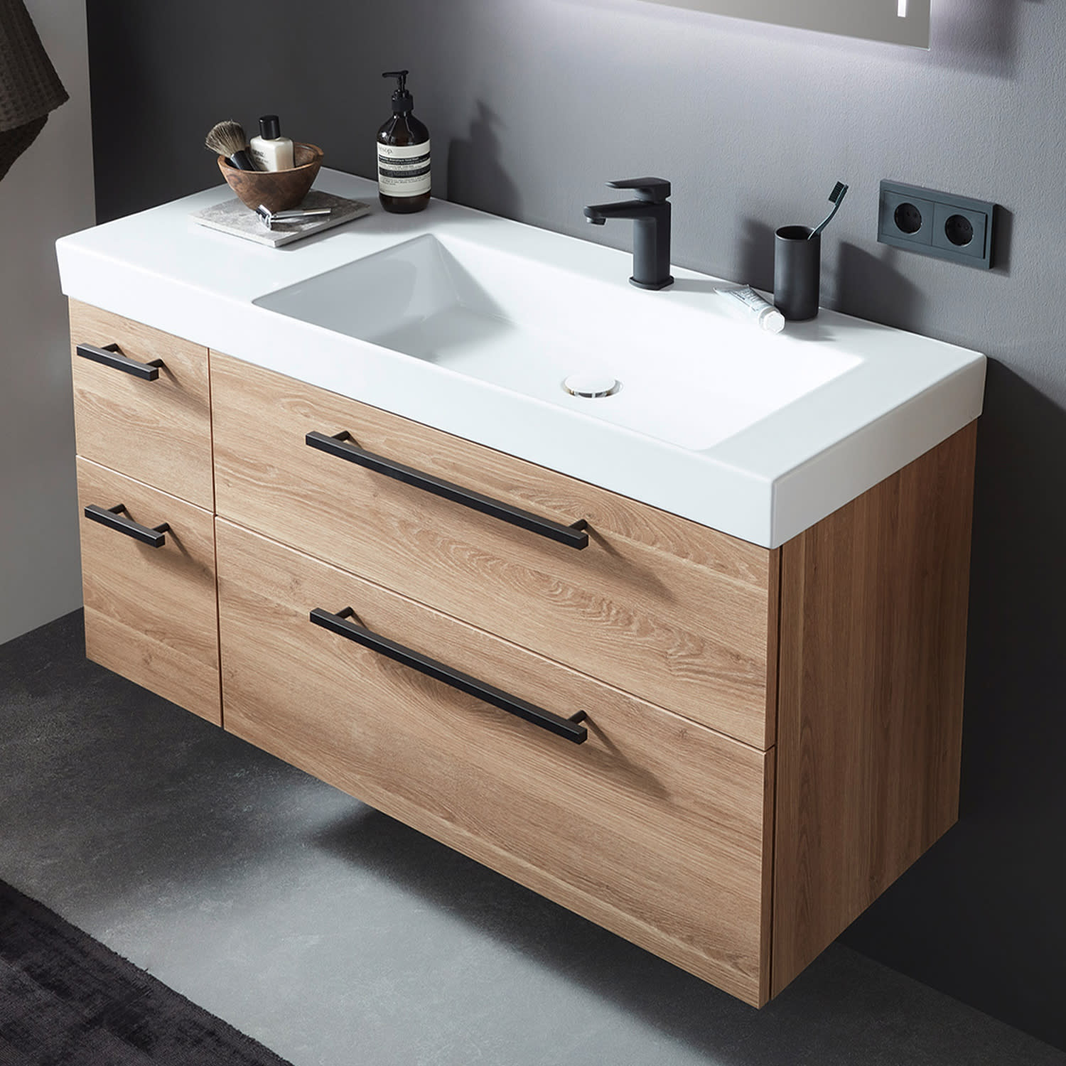 Puris c!mano Waschtischset 122 cm mit Waschtisch, Ablage links und 2 Unterschränken, Griff 359