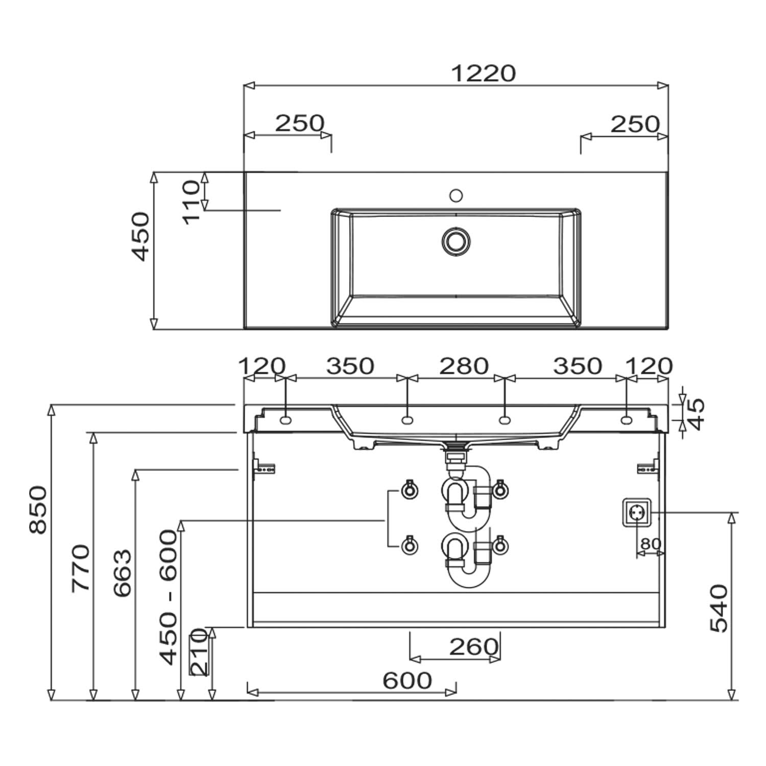 - Waschtischunterschrank mit 2 Auszügen
