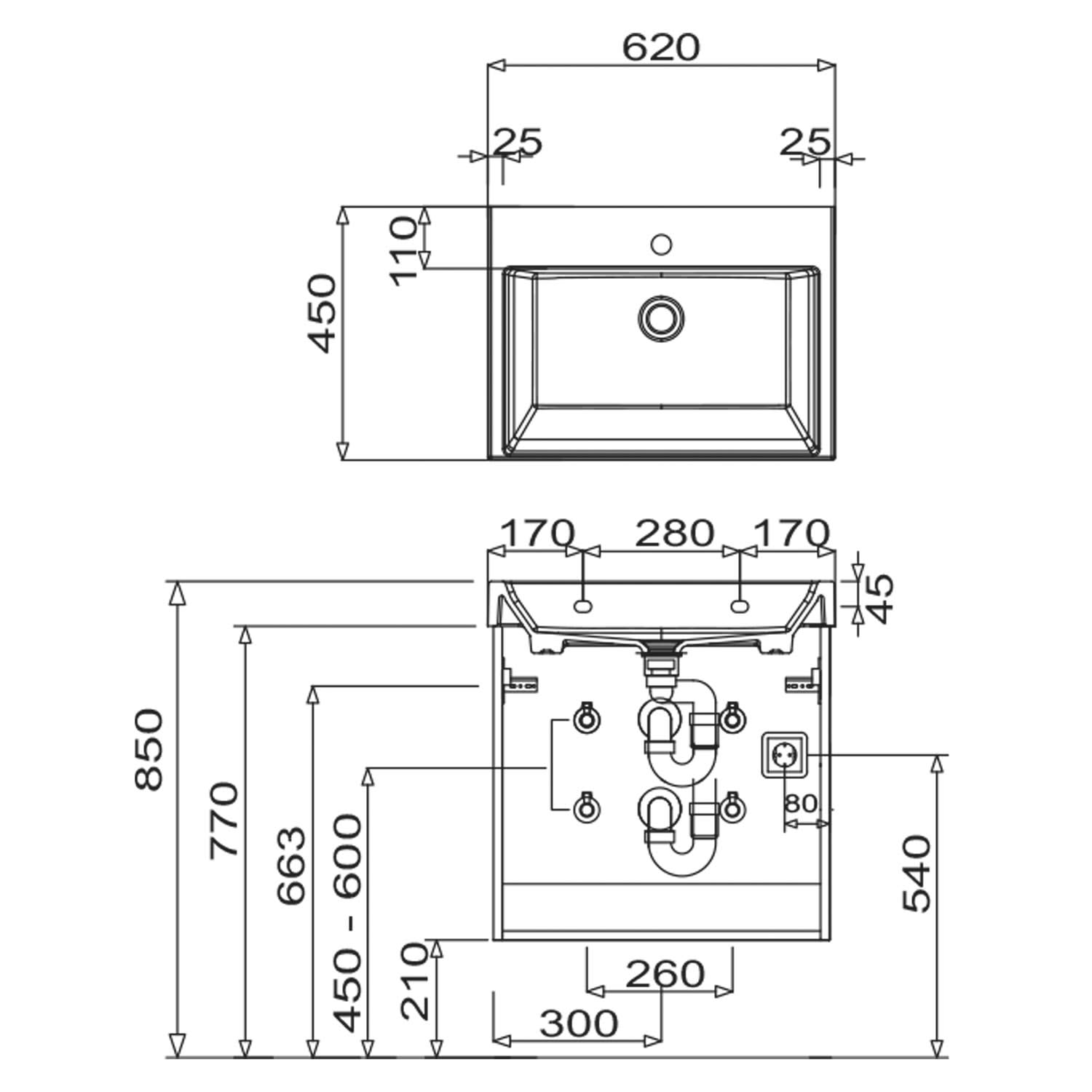 Puris c!mano Waschtischset 62 cm mit Waschtischunterschrank mit 2 Auszügen, Griff 359