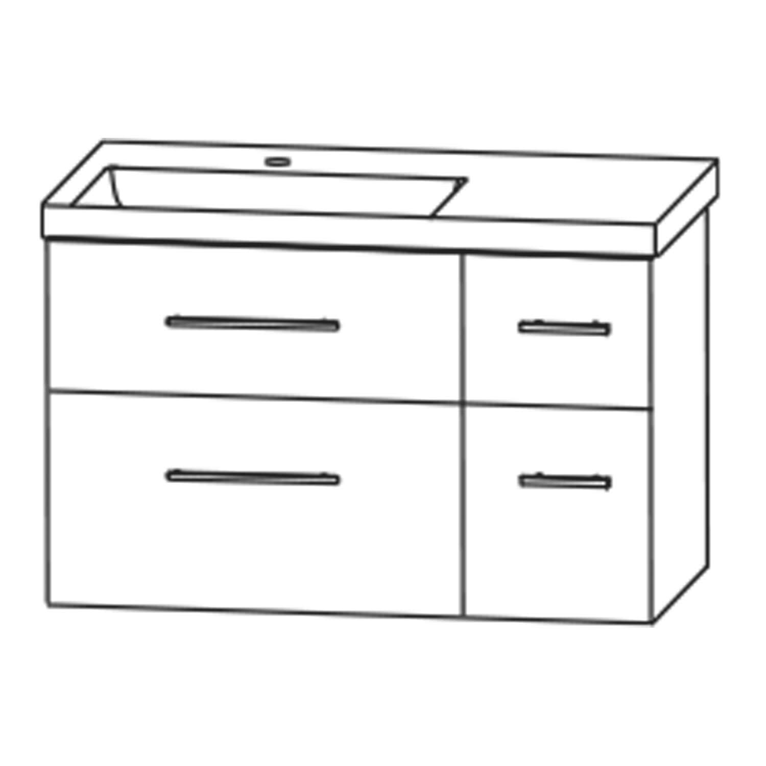 Puris c!mano Waschtischset 92 cm mit Waschtisch, Ablage rechts und 2 Unterschränken, Griff 338