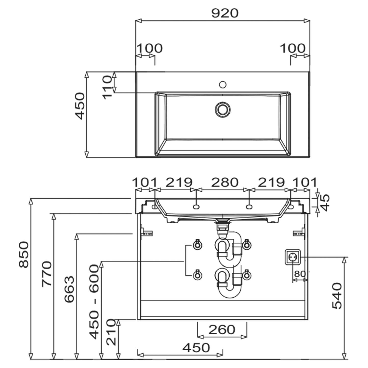 - oberer Auszug mit Siphonausschnitt