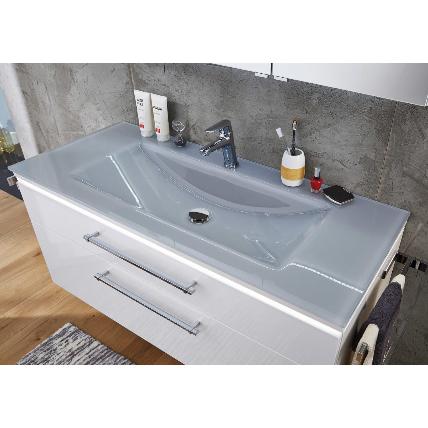 Puris Cool Line Waschtischunterschrank 120 x 47 x 52,4 cm mit LED-Beleuchtungsprofil, Griff 340