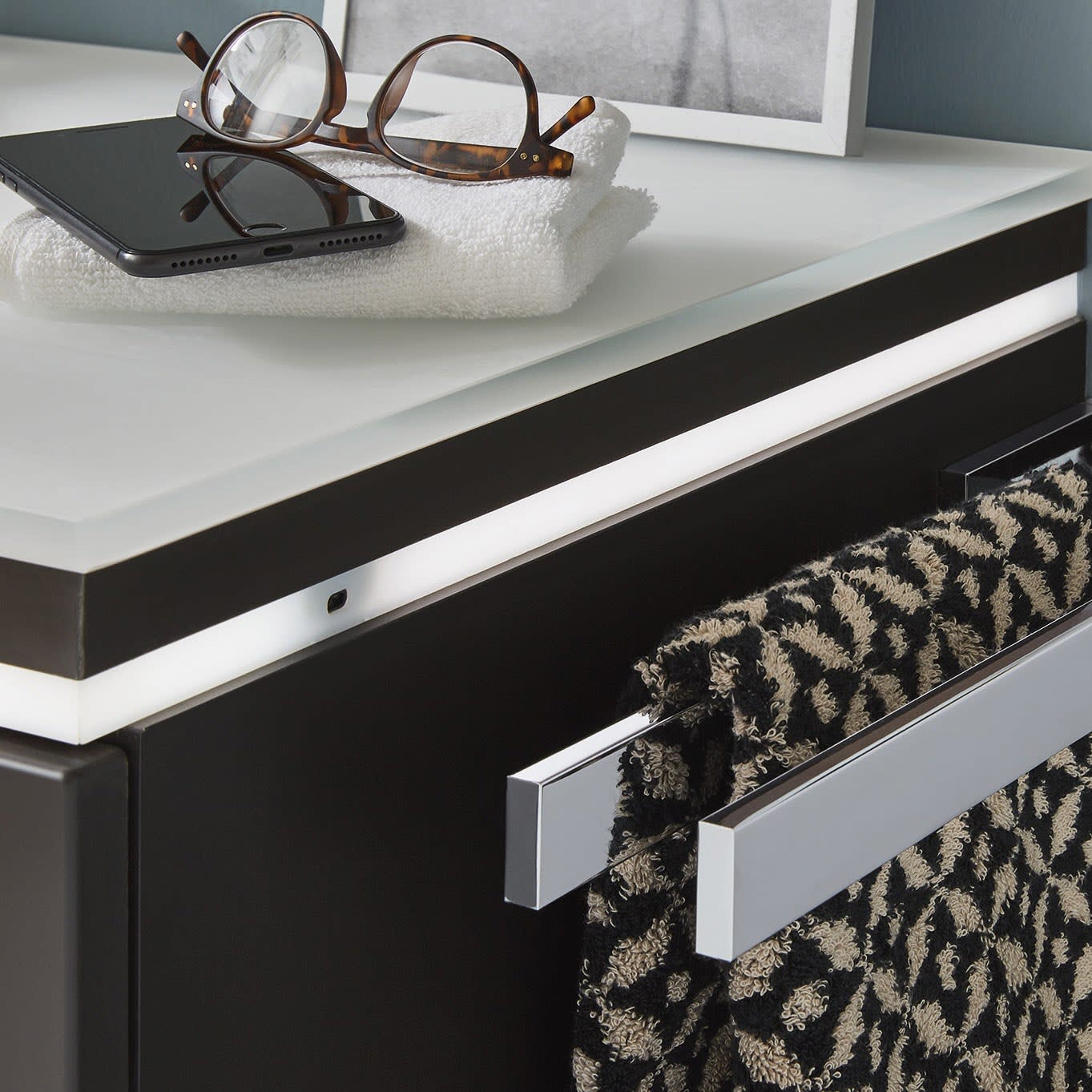 Puris Cool Line Waschtischunterschrank 90 x 47 x 52,4 cm für Keramikwaschtisch, mit LED-Beleuchtungsprofil, Griff 340