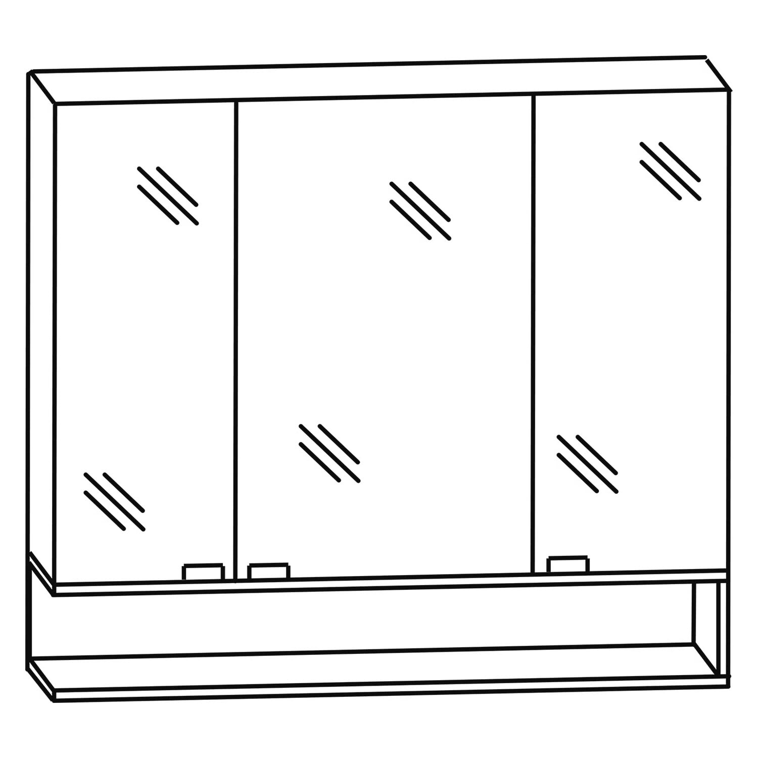 Puris c!mano Serie A Spiegelschrank 90 x 80 cm mit 3 Türen und Regal links geöffnet