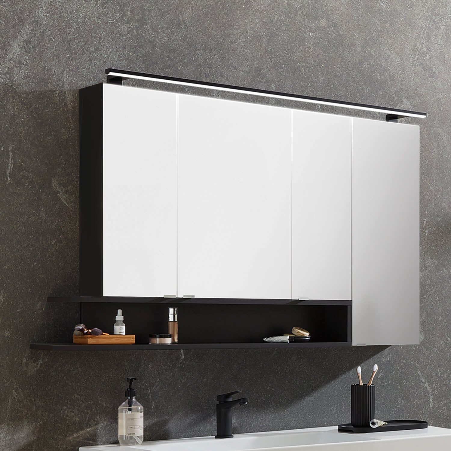 Puris c!mano Serie B Spiegelschrank 135 x 80 cm mit 4 Türen und Regal links geöffnet