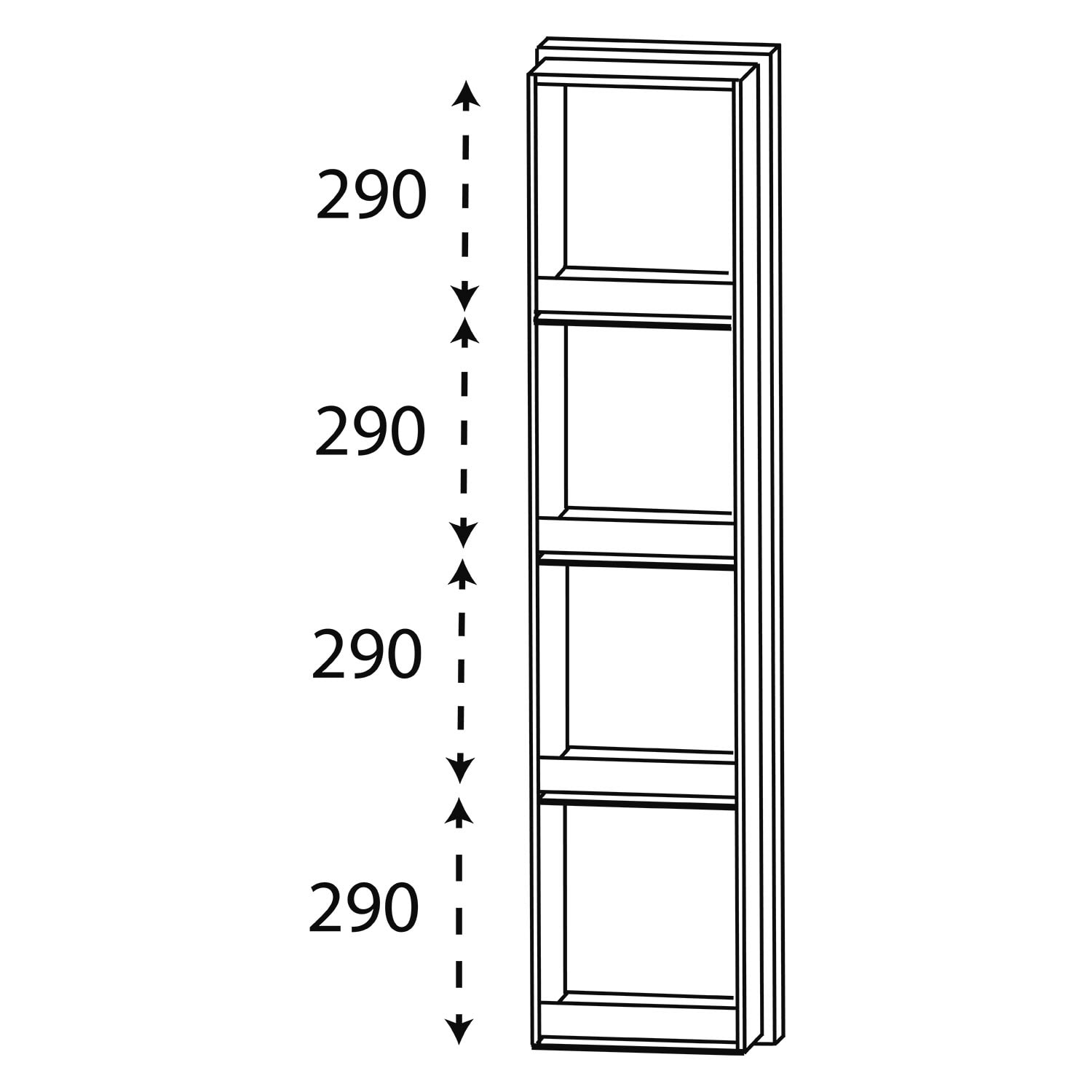 Puris c!puro Mittelschrankregal 30 cm mit 4 Fächern, Frontblende in Korpusfarbe
