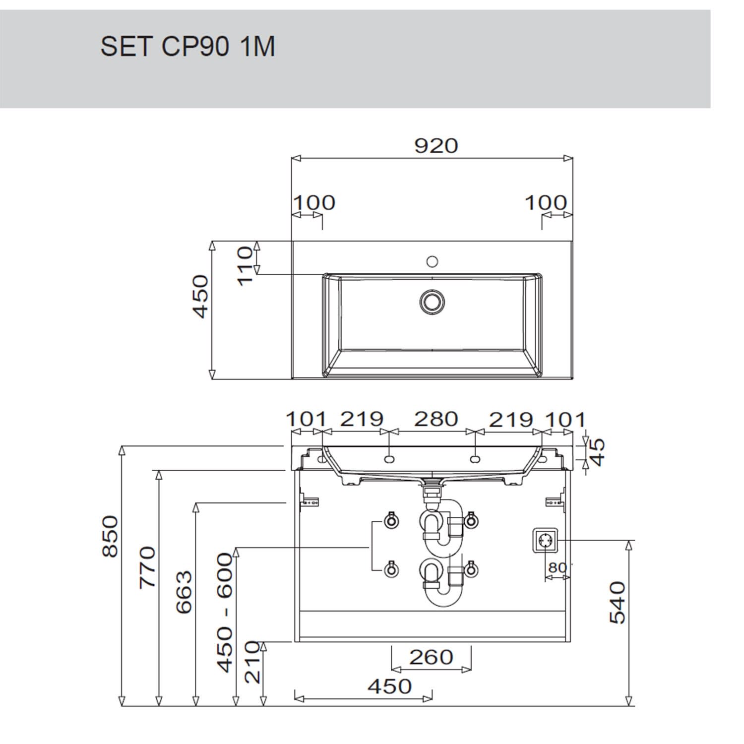 Puris c!puro Waschtischset 92 cm mit Waschtischunterschrank mit 2 Auszügen, Griff 351