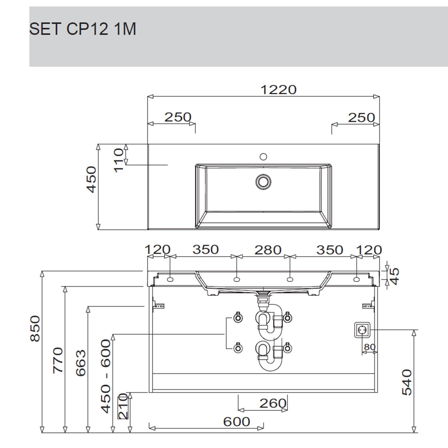 Puris c!puro Waschtischset 122 cm mit Waschtischunterschrank mit 2 Auszügen, Griff 351