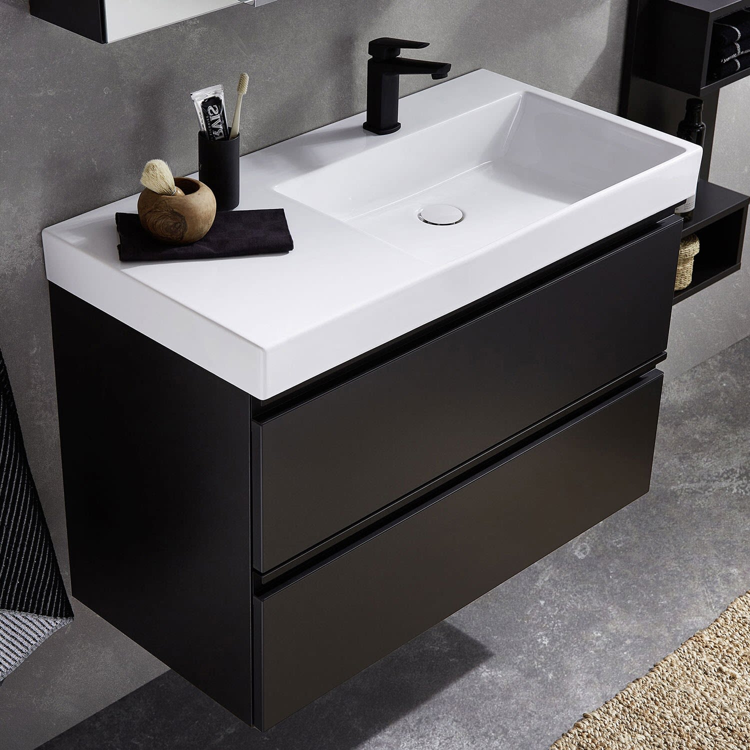 Puris c!puro Waschtischset 92 cm mit Waschtisch, Ablage links und Waschtischunterschrank mit 2 Auszügen, Griff 352