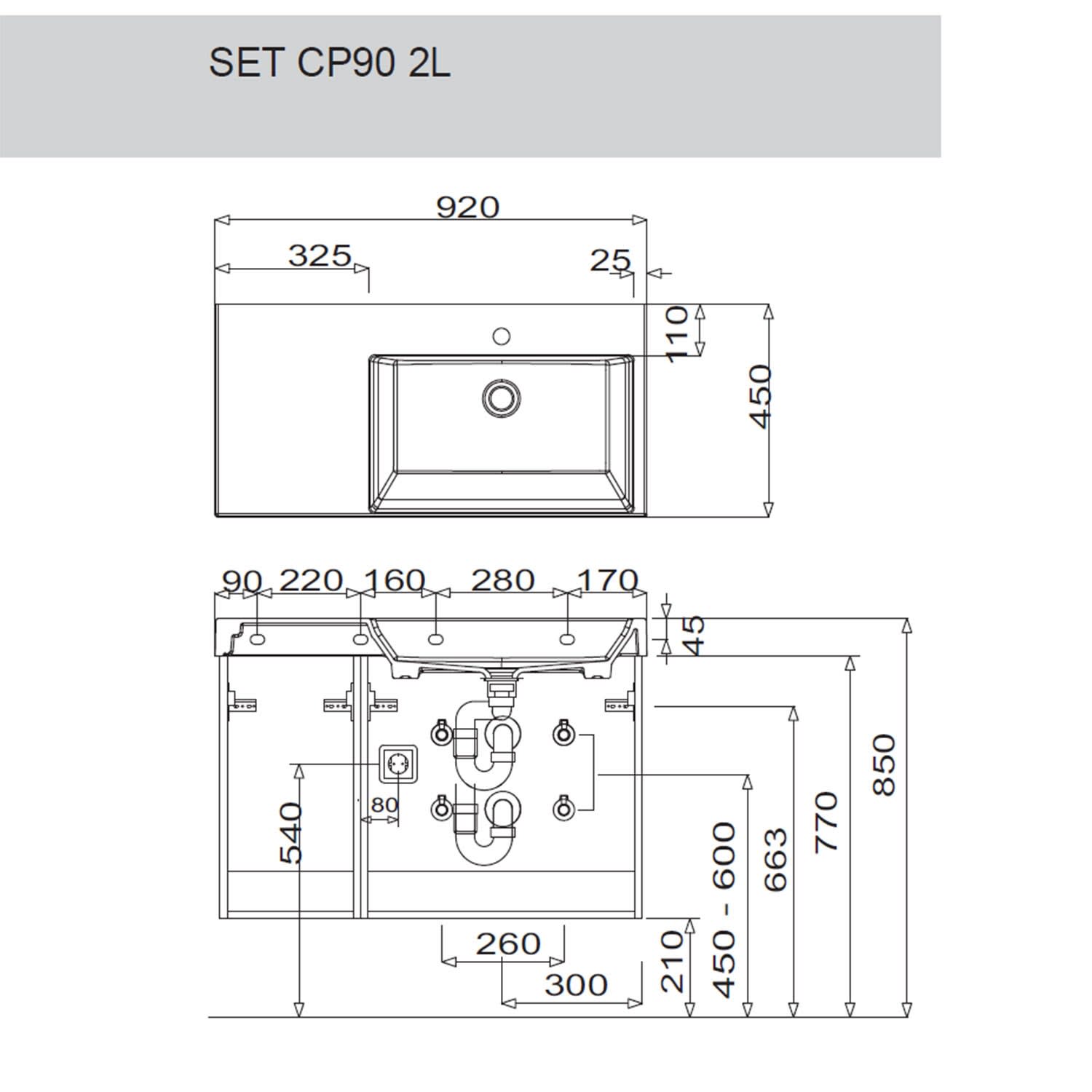 Puris c!puro Waschtischset 92 cm mit Waschtisch, Ablage links und Unterschränken mit 4 Auszügen, Griff 352