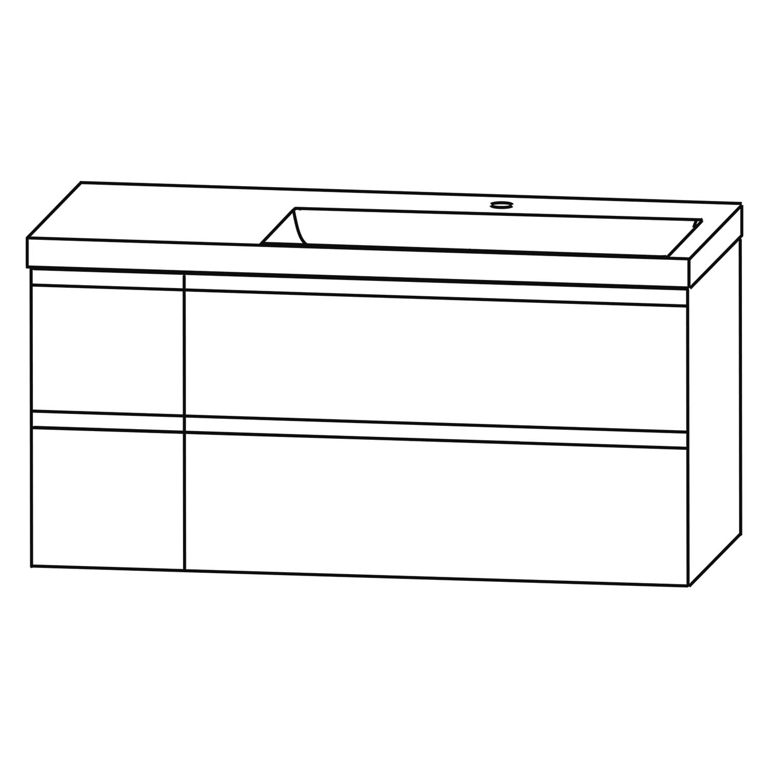 Puris c!puro Waschtischset 122 cm mit Waschtisch, Ablage links und Unterschränken mit 4 Auszügen, Griff 352