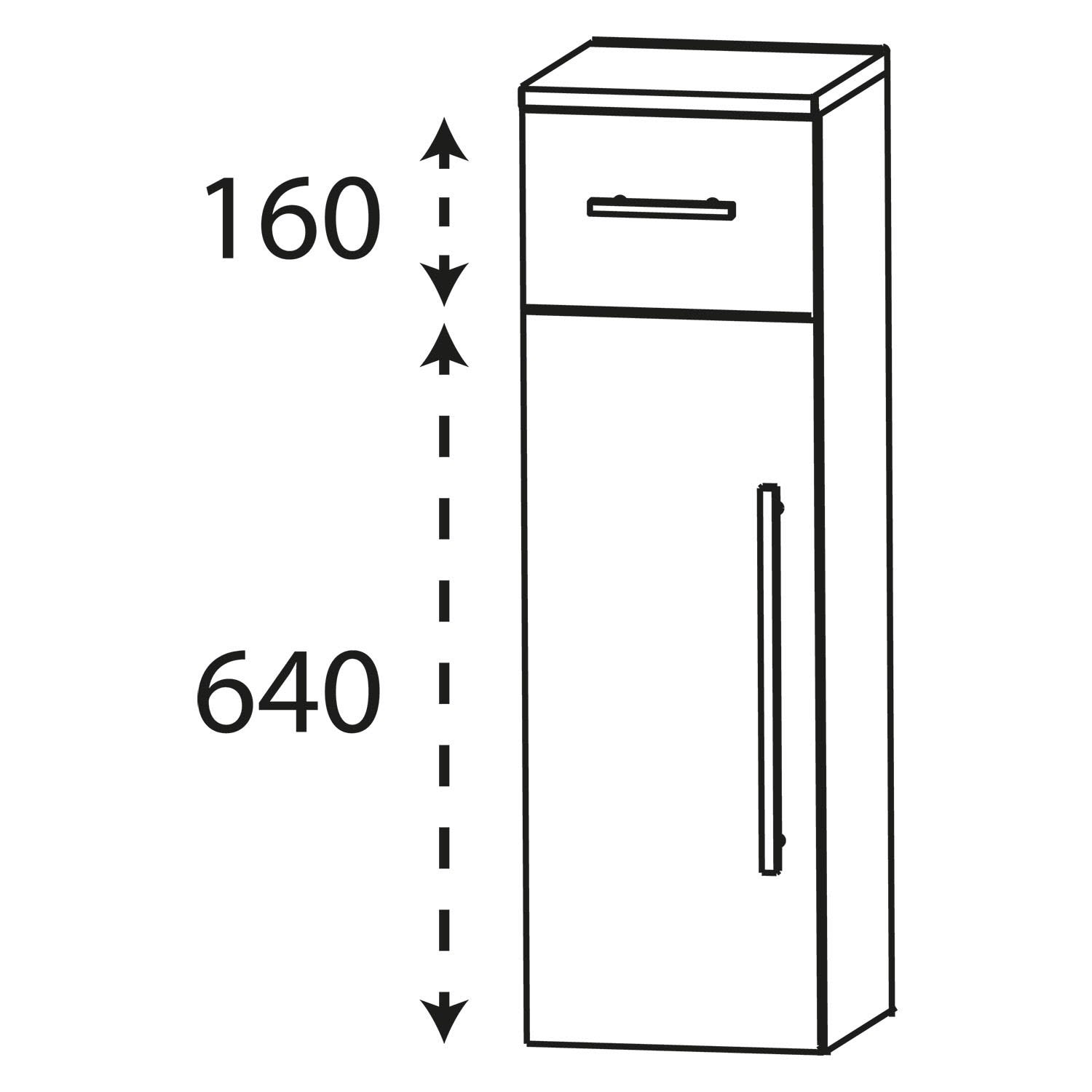 Puris Linea Highboard 30 x 30 x 81,6 cm mit 1 Tür, Anschlag rechts, 1 Schubkasten, Griff 350