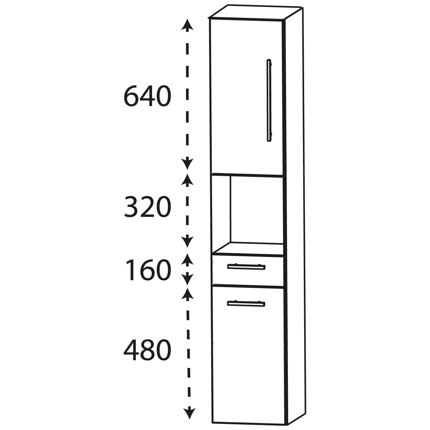 Puris Linea Hochschrank 40 x 30 x 160 cm mit 2 Türen, Anschlag links, 1 Schubkasten, 1 Fach, Griff 320