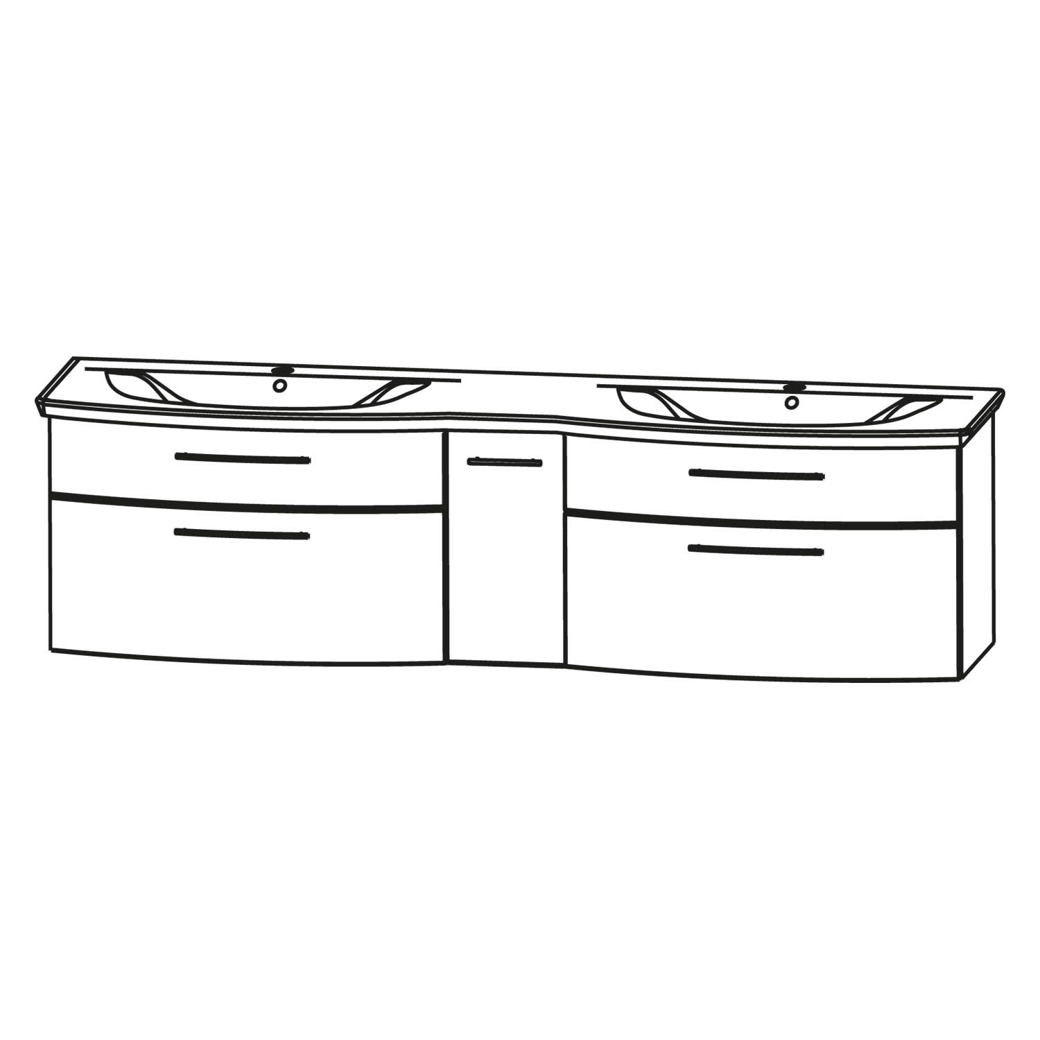 Puris Linea Doppelwaschtisch mit Unterschrank 171,2 cm mit LED-Beleuchtung, Anschlag links, Griff 350