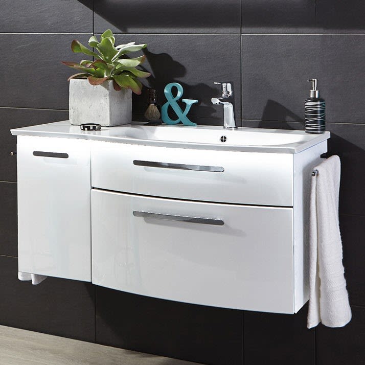 Puris Linea Waschtisch mit Unterschrank 101,2 cm mit LED-Beleuchtung, Tür links, Griff 320