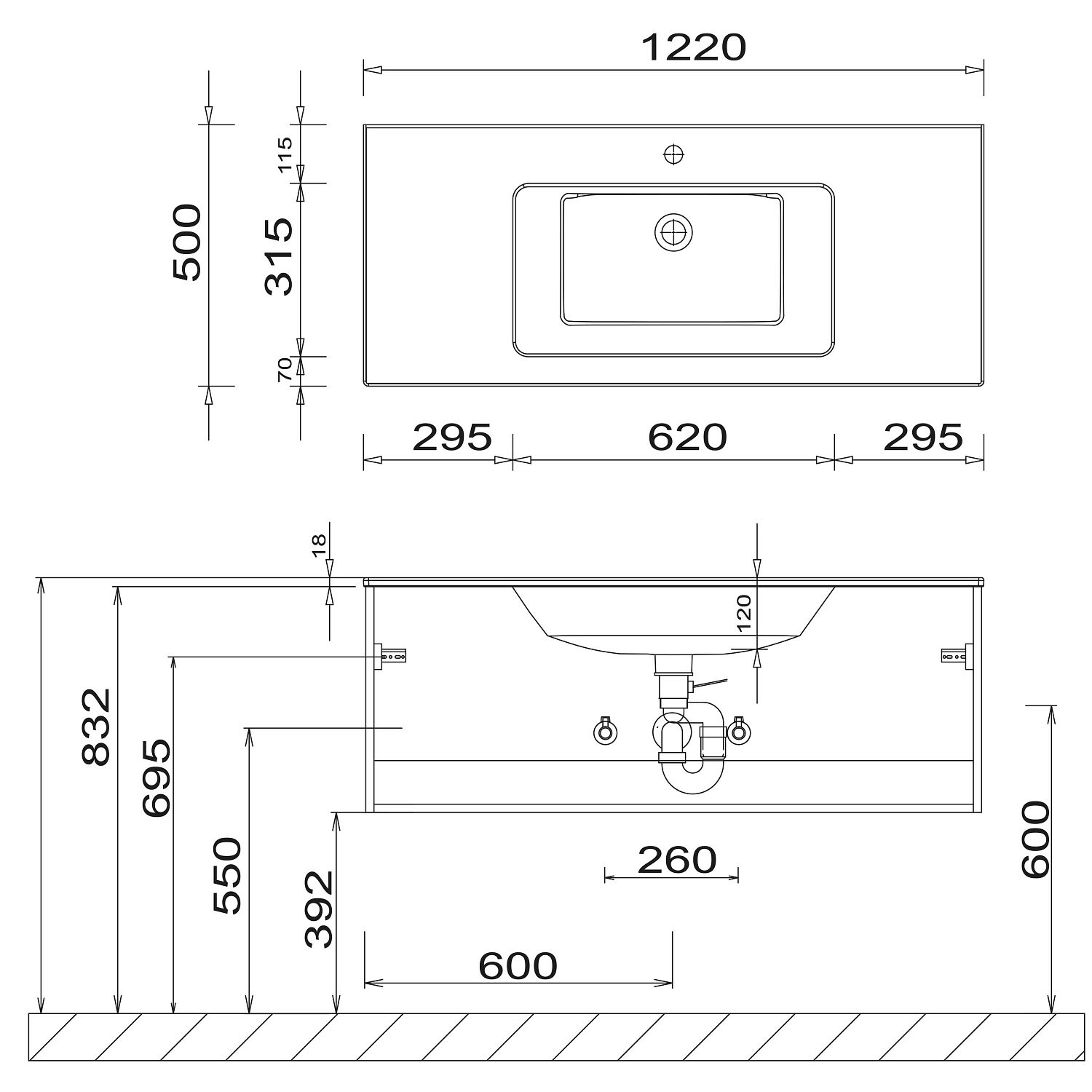 - inkl. Abdeckplatte 32,5 cm tief