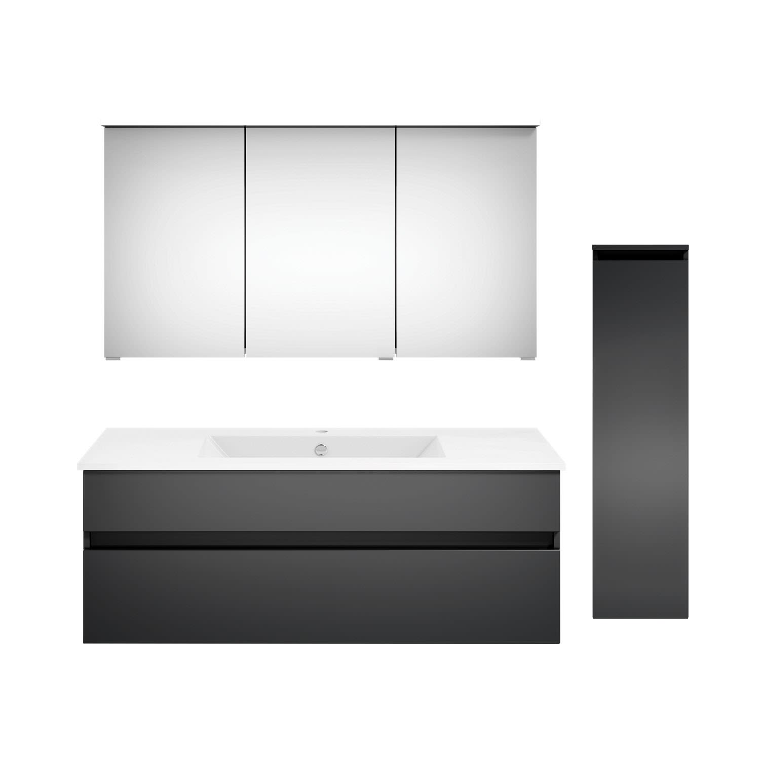 Puris Next4You twenty one Waschtischkombination 120 cm mit Spiegelschrank und Mittelschrank Anschlag rechts