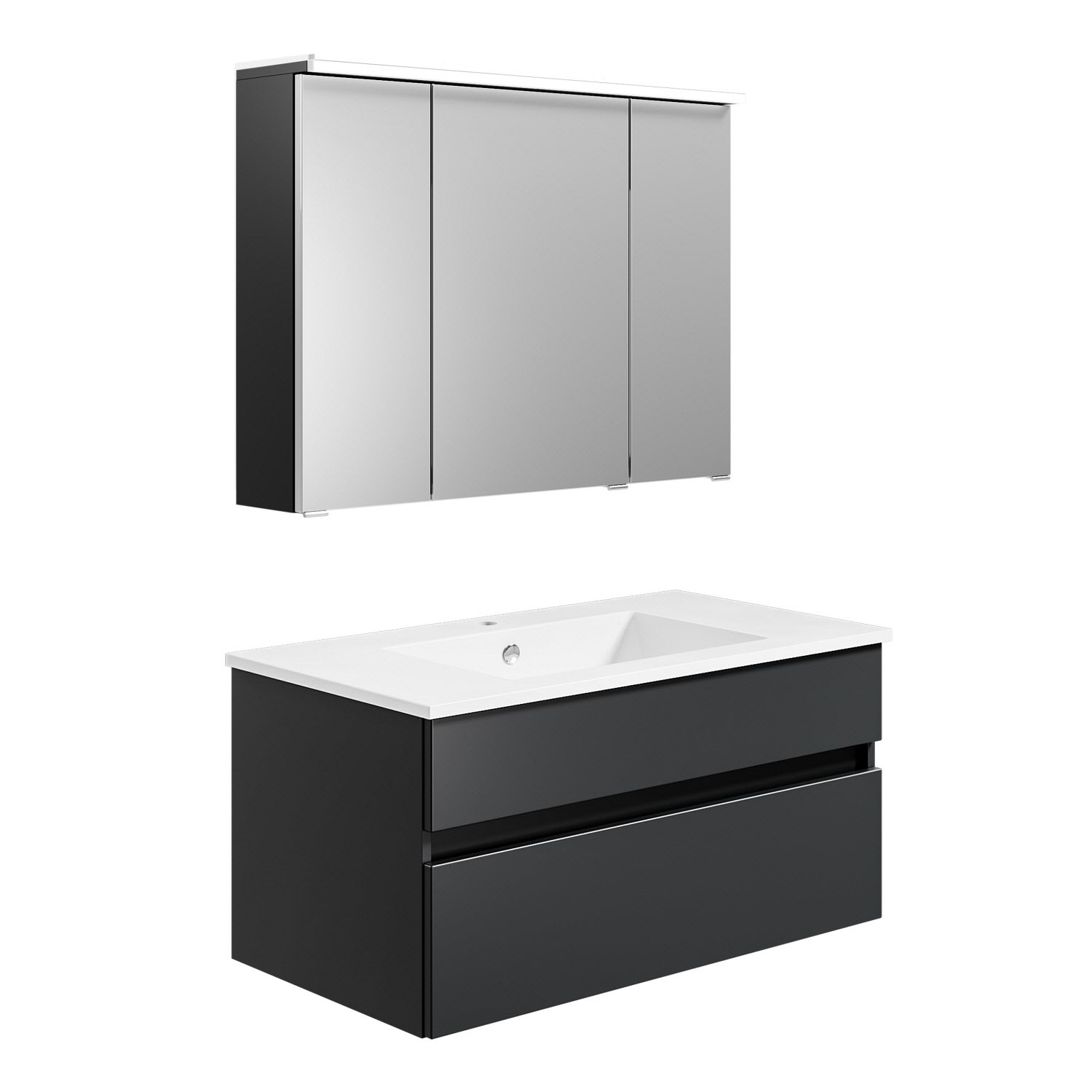 mit Spiegelschrank, Unterschrank mit 2 Auszügen, Mittelschrank Anschlag links
