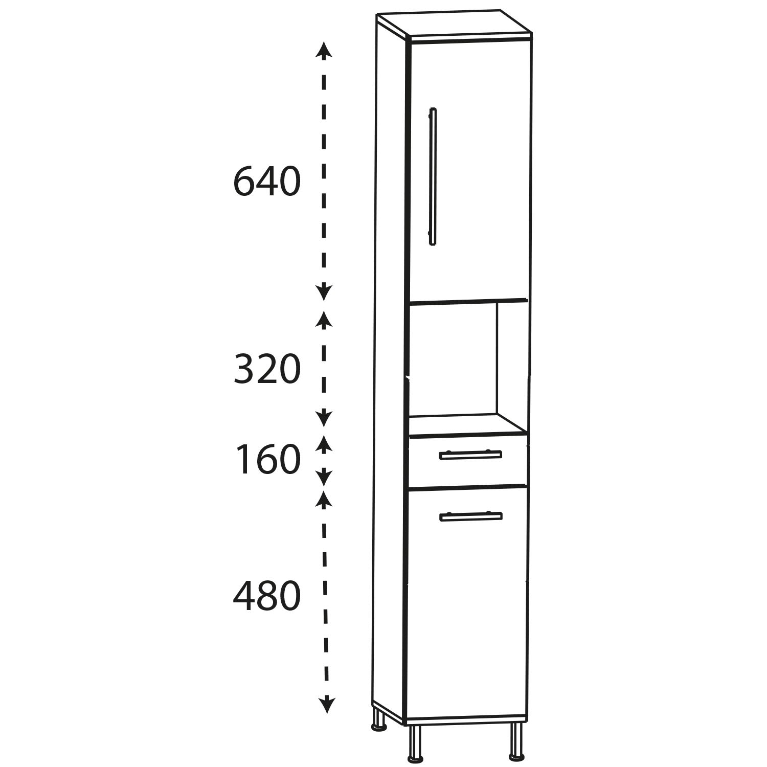 Puris Quada Hochschrank 40 x 30 x 174,8 cm mit 1 Schubkasten, 1 offenem Fach und 2 Türen, Anschlag rechts, Griff 335