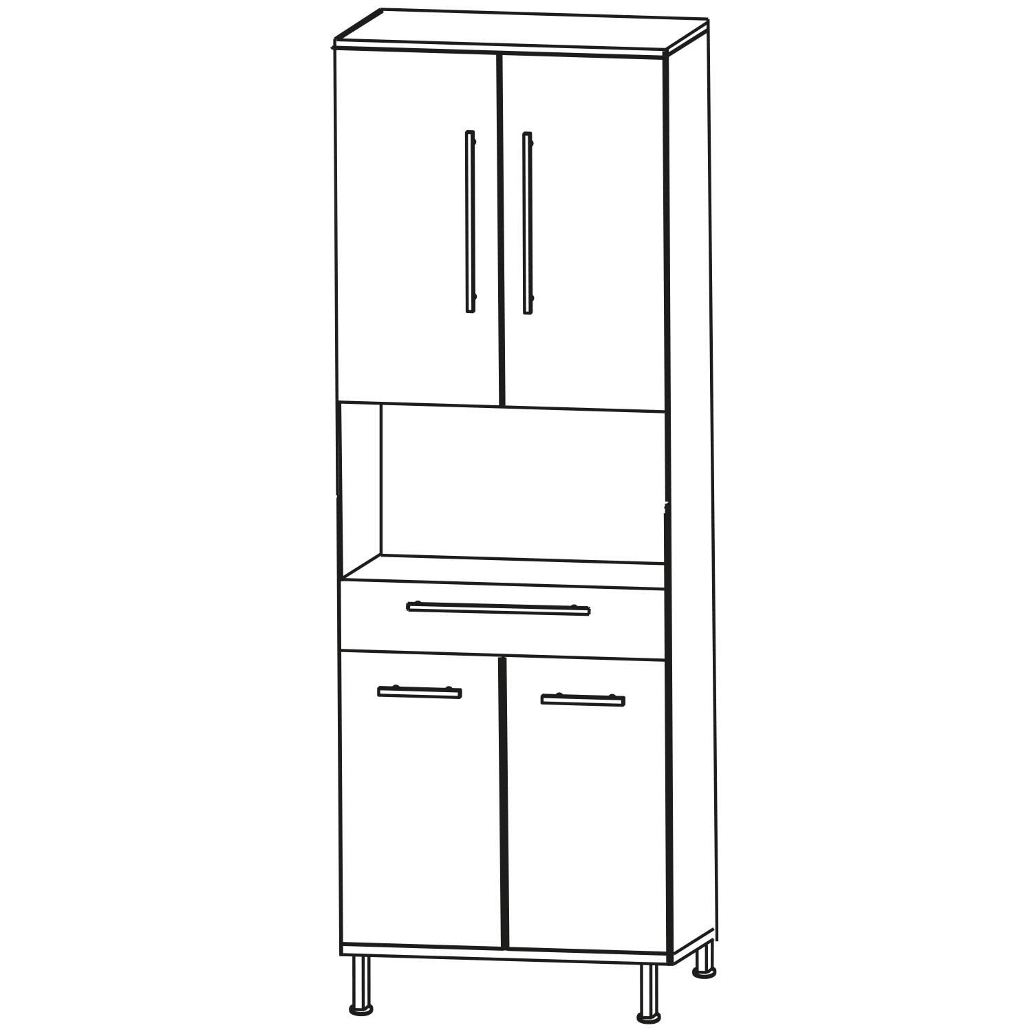 Puris Quada Hochschrank 60 x 30 x 174,8 cm mit 1 Schubkasten, 1 offenem Fach und 4 Türen, Griff 335