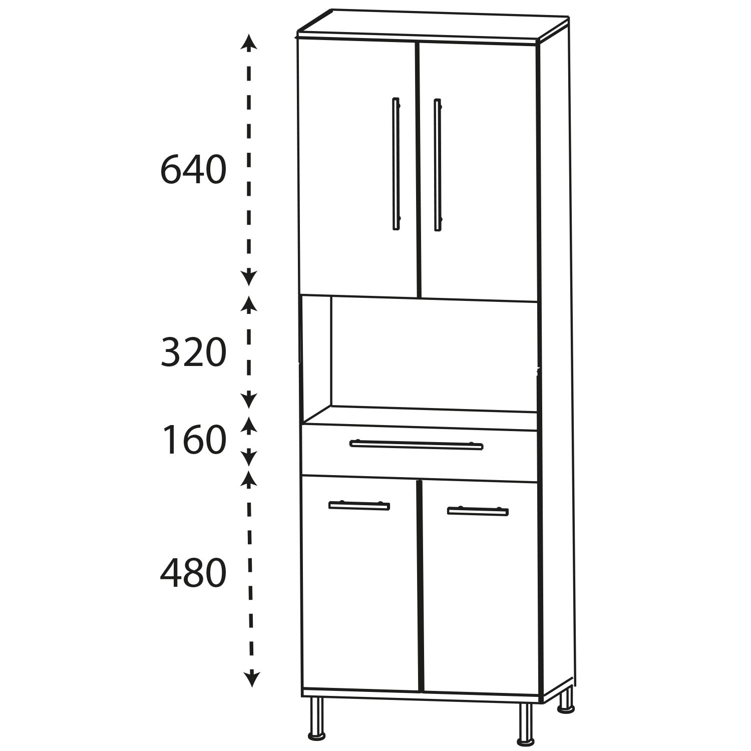 Puris Quada Hochschrank 60 x 30 x 174,8 cm mit 1 Schubkasten, 1 offenem Fach und 4 Türen, Griff 335